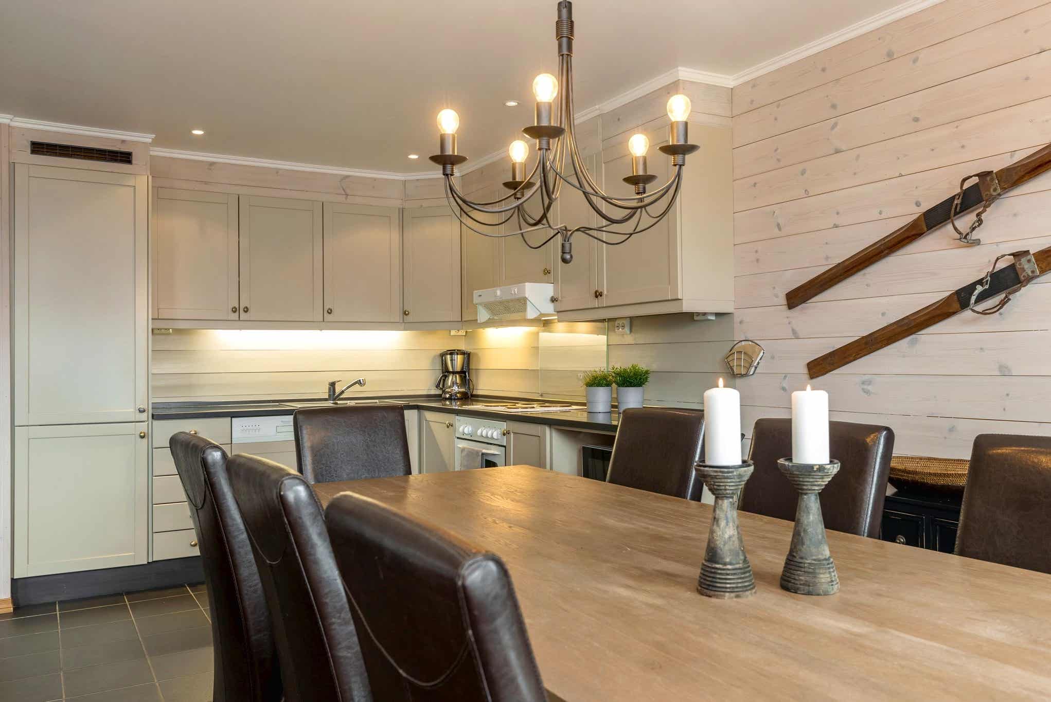 Skarsnuten Fjellandsby bevindt zich in Hemsedal Skisenter. Appartement, 7+1 bedden, 84 m², woonkamer met gecombineerde keuken, 3 slaapkamers, 1 douche, 2 WC, sauna.