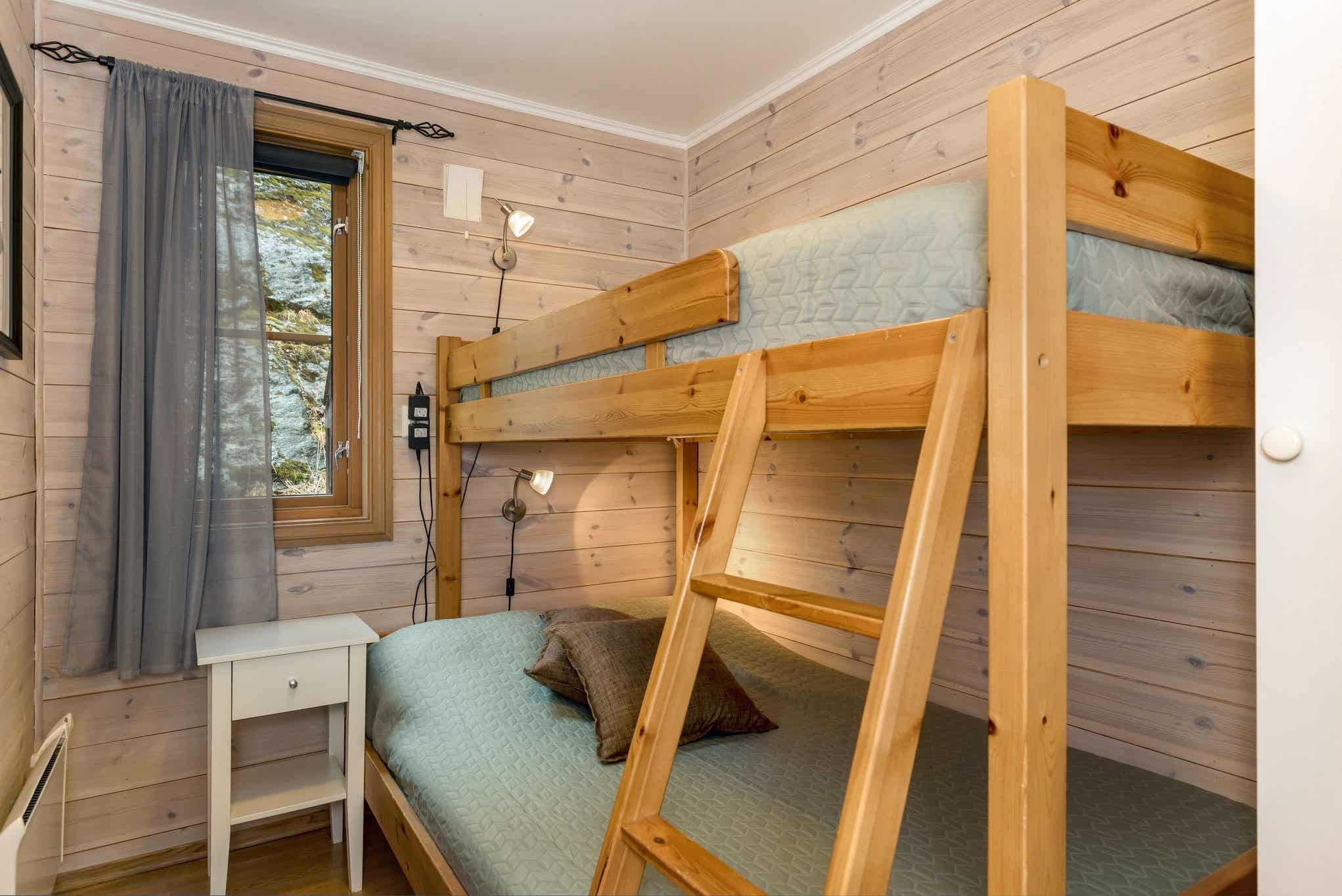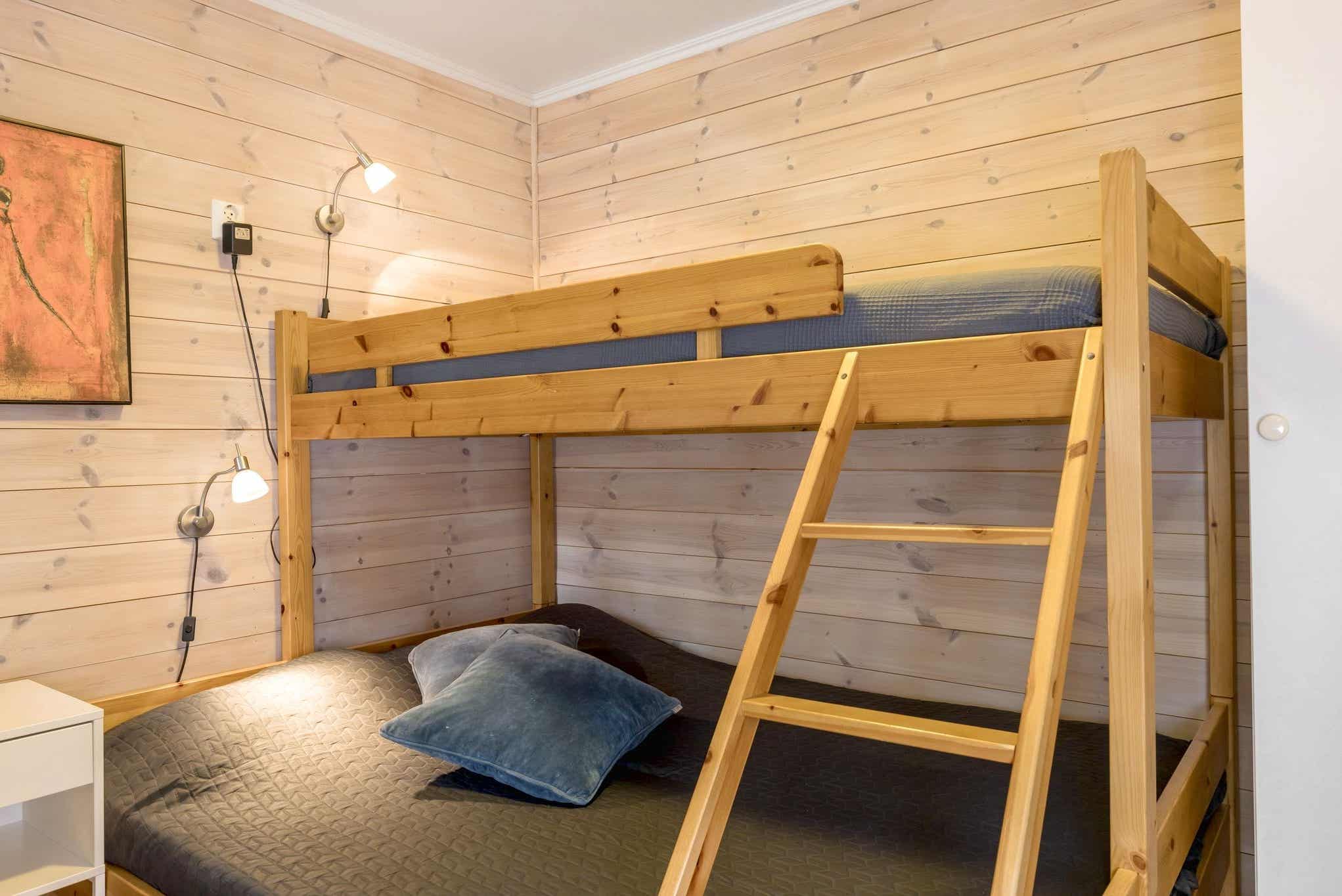 Slaapkamers:Slaapkamer 1: 1 tweepersoonsbed. Slaapkamer 2: 1 stapelbed met een breed onderbed. Slaapkamer 3: 1 stapelbed met 150 cm breed onderbed.