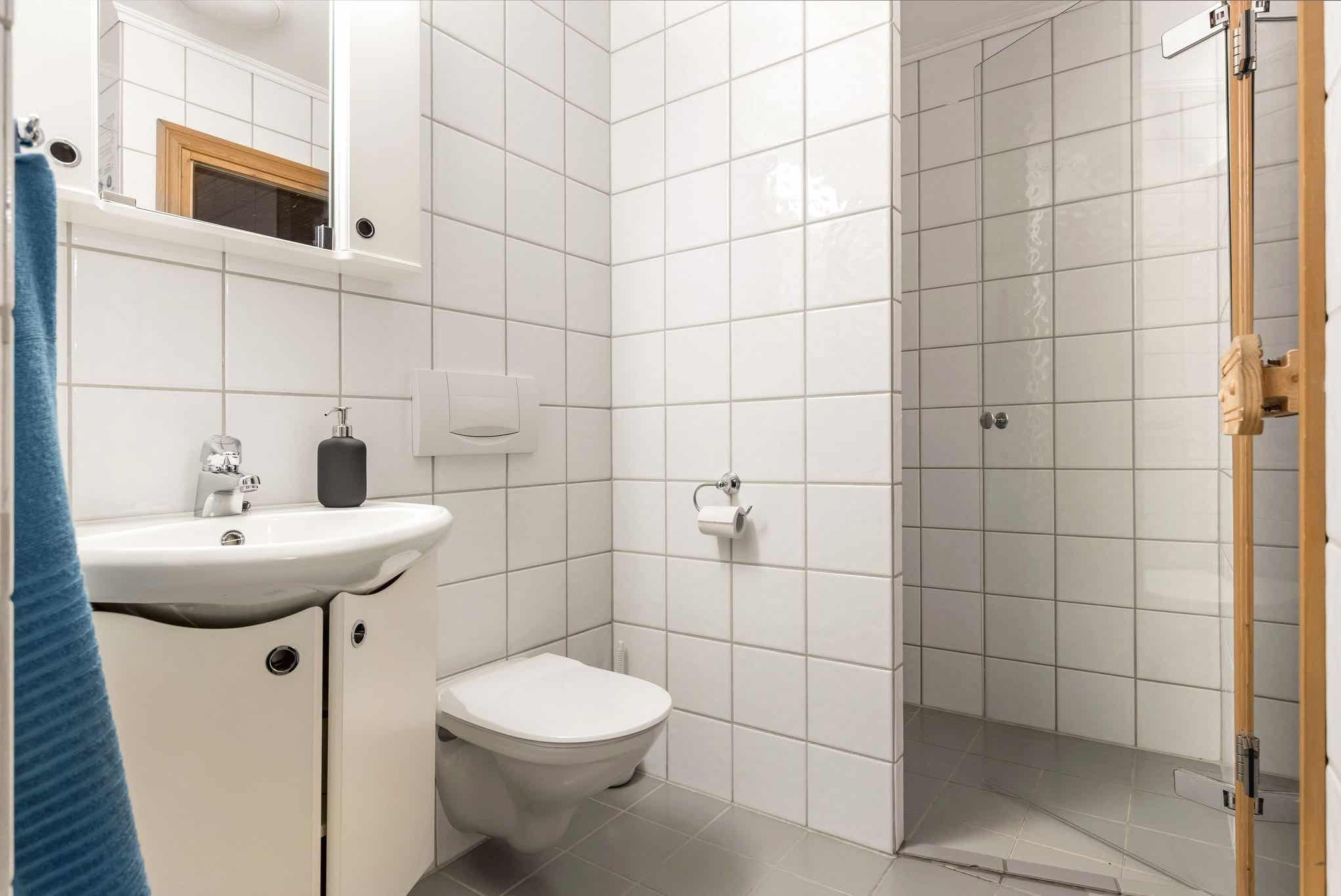 Badkamers:Badkamer 1: sauna, douche, toilet. Badkamer 2: toilet.