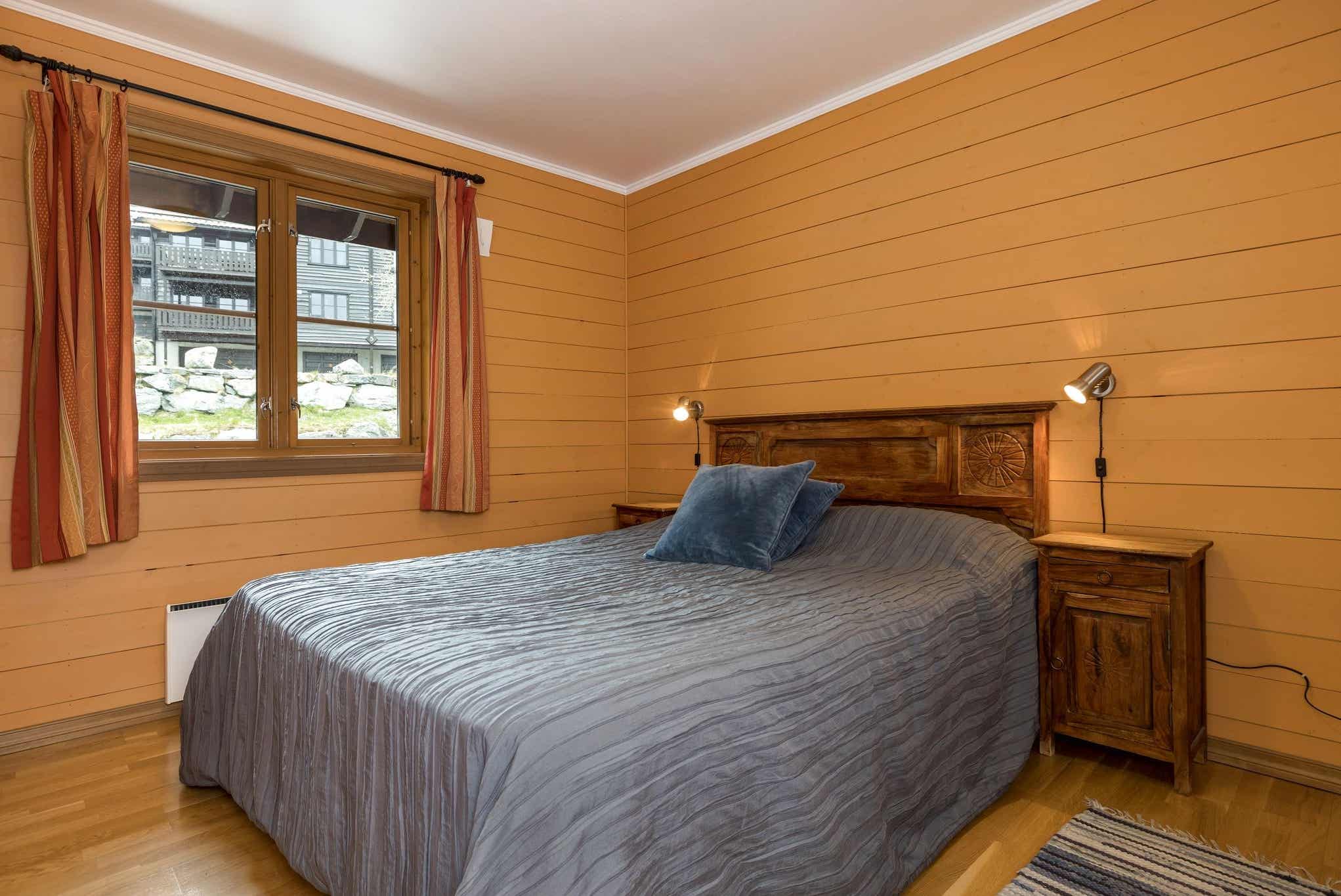 Skarsnuten Fjellandsby bevindt zich in Hemsedal Skisenter. Appartement, 9+1 bedden, 119 m², woonkamer met gecombineerde keuken, 4 slaapkamers, 2 douches, 2 WC, sauna.