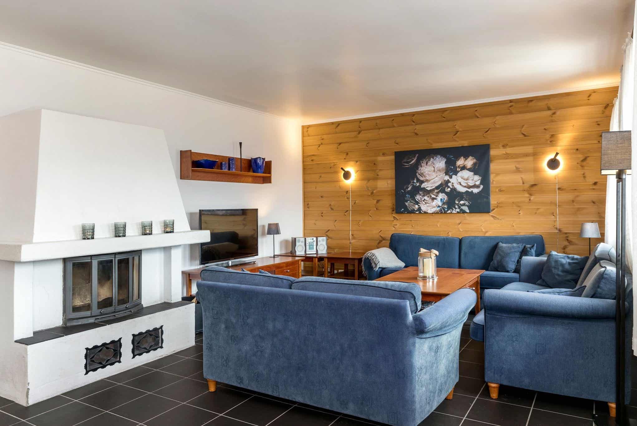 televisie, open haard.