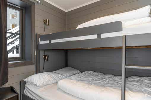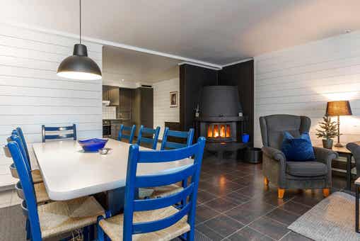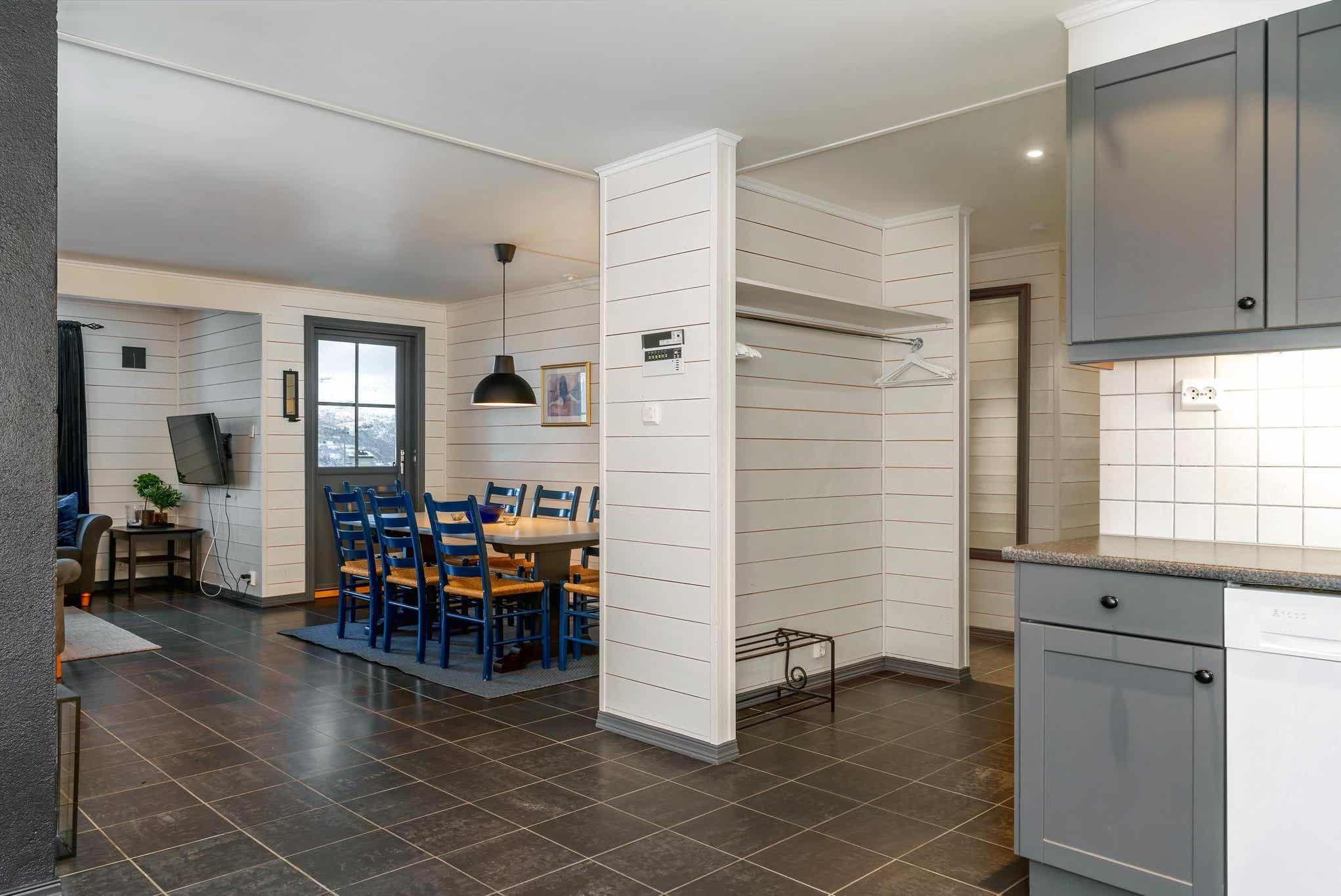 Skarsnuten Fjellandsby bevindt zich in Hemsedal Skisenter. Appartement, 6+1 bedden, 84 m², woonkamer met gecombineerde keuken, 3 slaapkamers, 1 douche, 2 WC, sauna.