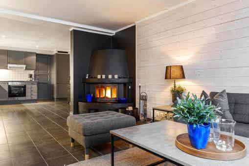 Skarsnuten Fjellandsby bevindt zich in Hemsedal Skisenter. Appartement, 6+1 bedden, 84 m², woonkamer met gecombineerde keuken, 3 slaapkamers, 1 douche, 2 WC, sauna.