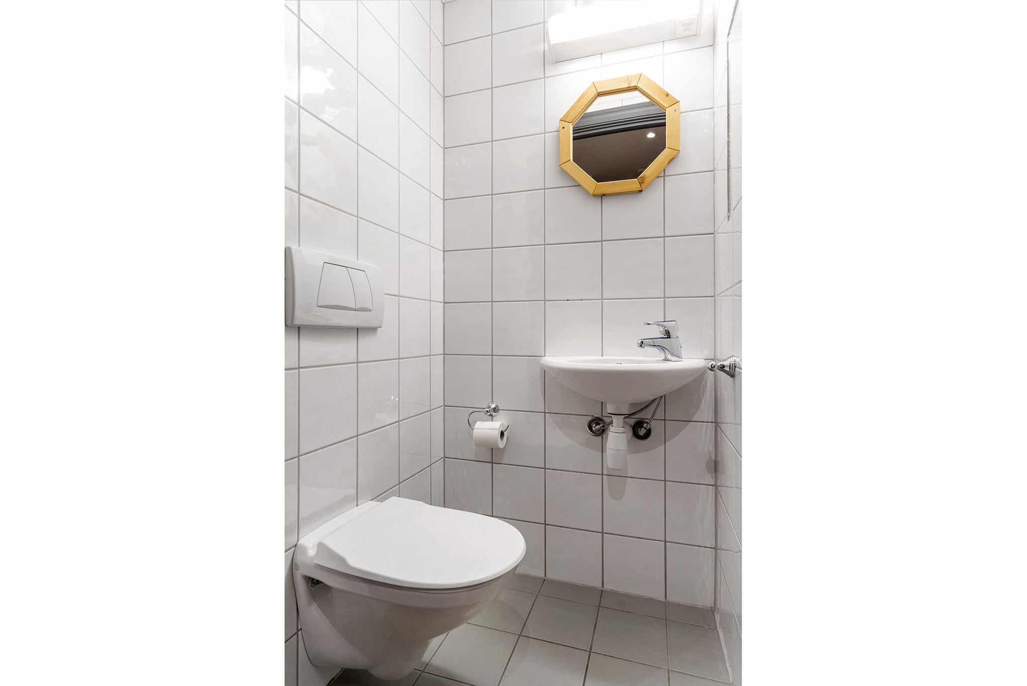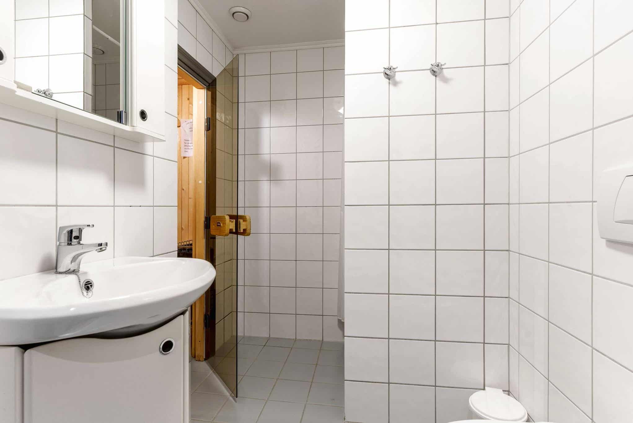 Badkamers:Badkamer 1: sauna, douche, toilet. Badkamer 2: toilet.