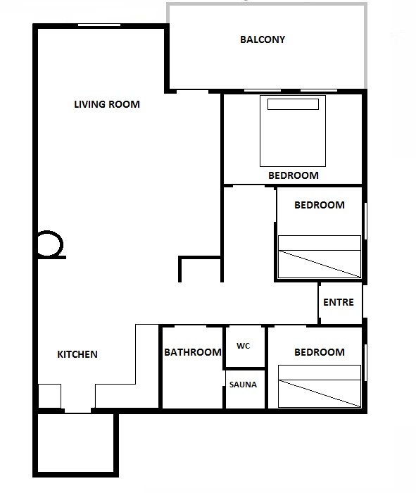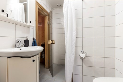 Badkamers:Badkamer 1: sauna, douche, toilet. Badkamer 2: toilet.