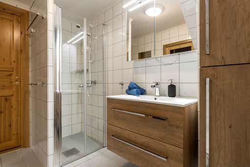 Badkamers:Badkamer 1: sauna, douche, toilet. Badkamer 2: douche, toilet.