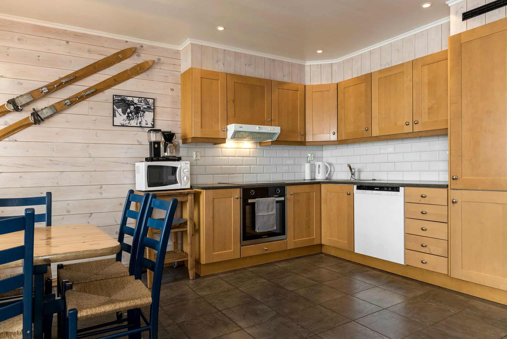 Balkon (geen sneeuwruimen), Skilocker, Skarsnuten Fjellandsby ligt in een heuvelachtig gebied. De toegang tot het appartement kan variëren, afhankelijk van het terrein. Wij adviseren het gebruik van sneeuwkettingen bij het oprijden van het laatste steile stuk.