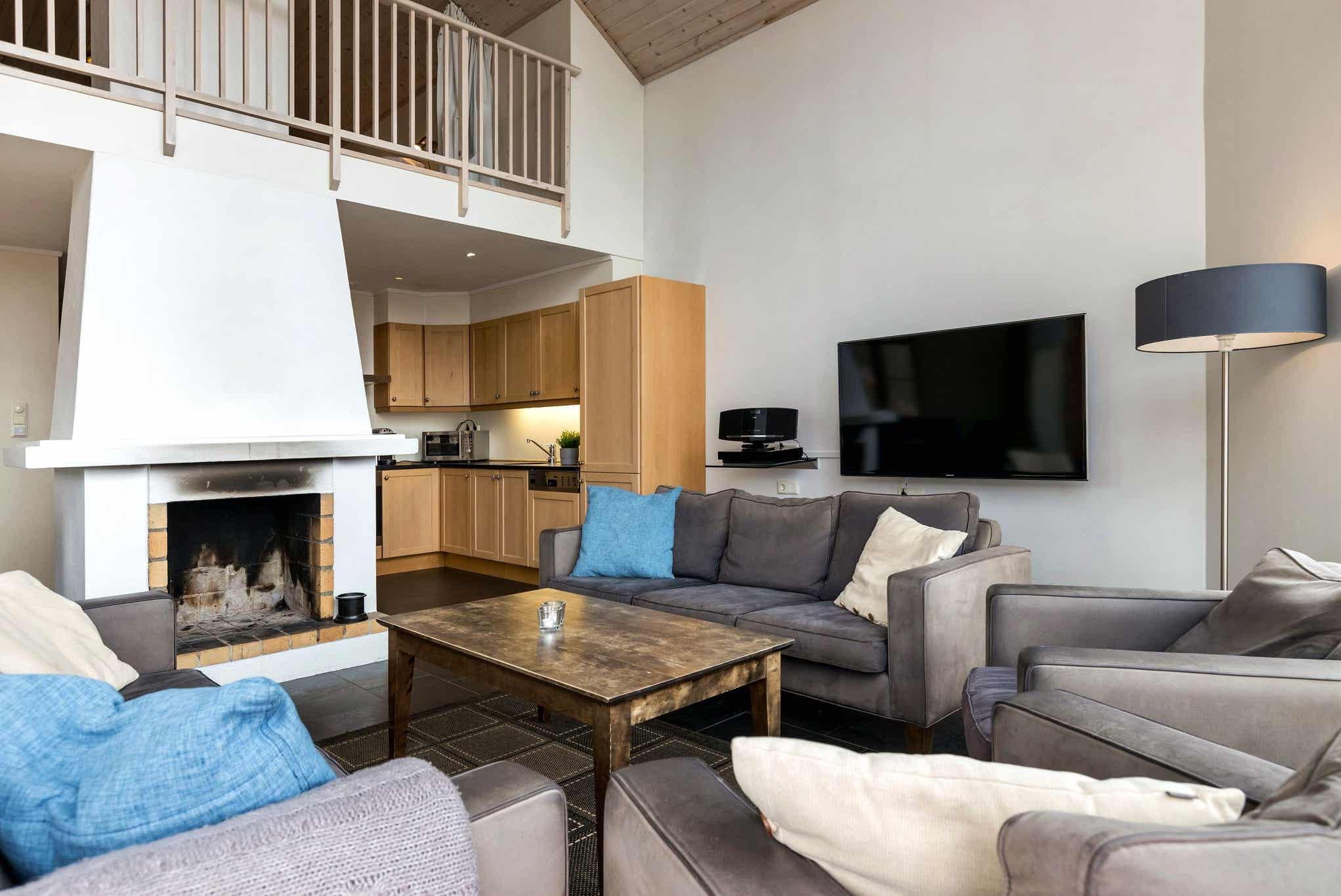 TV, open haard (brandhout inbegrepen).