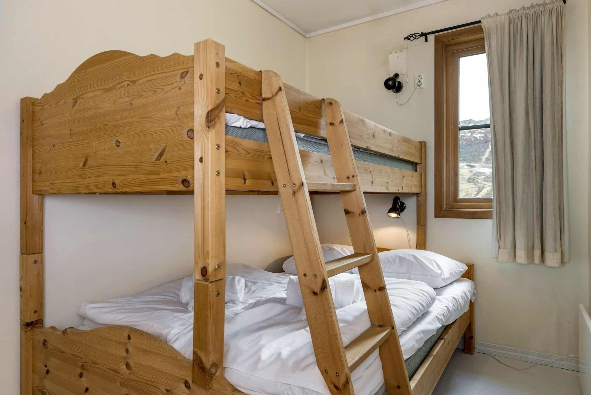 Slaapkamers:Slaapkamer 1: 1 tweepersoonsbed. Slaapkamer 2: 1 stapelbed met 120 cm breed onderbed.