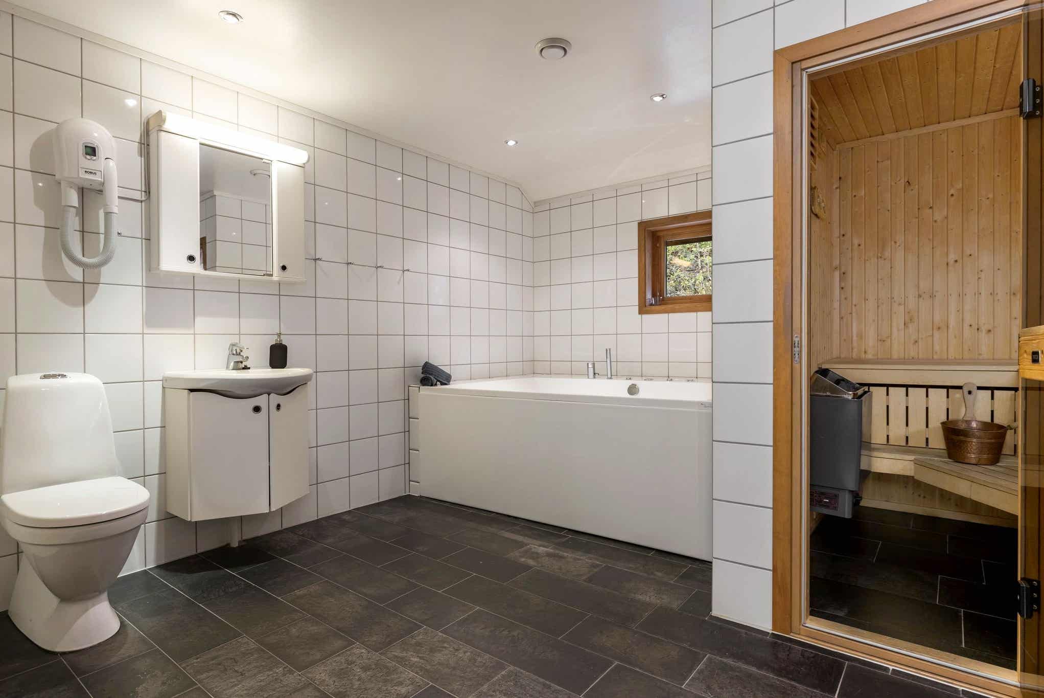 Badkamers:Badkamer 1: toilet, sauna. Badkamer 2: toilet, douche.