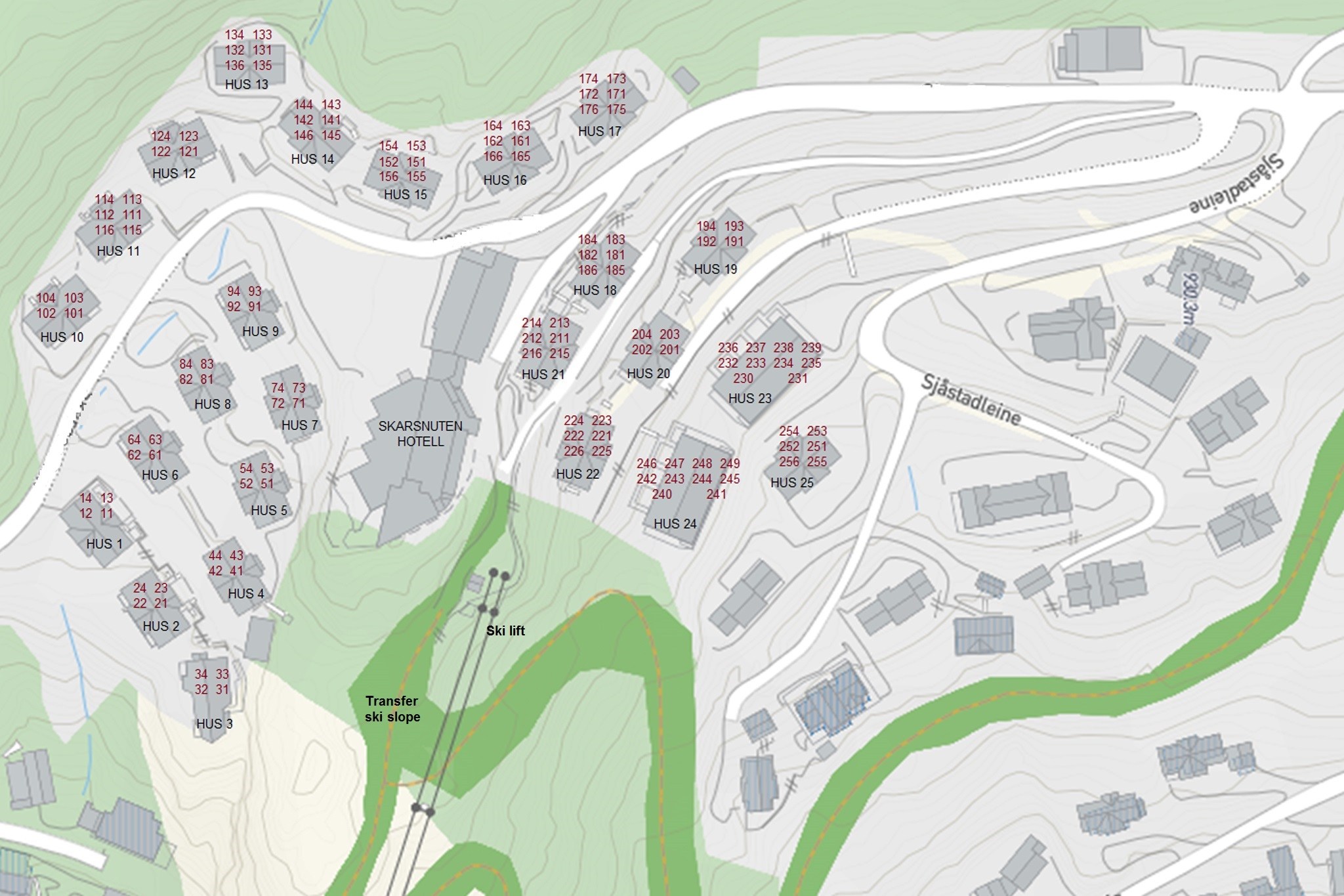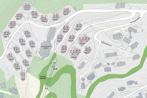 Skarsnuten Fjellandsby ligt in een heuvelachtig gebied. De toegang tot het appartement kan variëren, afhankelijk van het terrein. Wij adviseren het gebruik van sneeuwkettingen bij het oprijden van het laatste steile stuk.