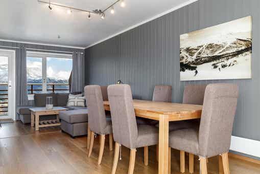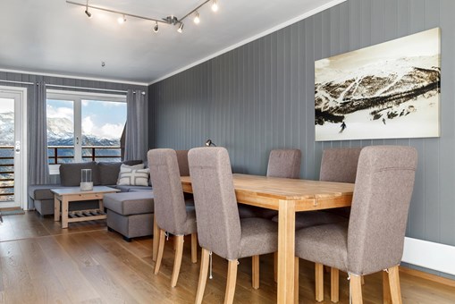 Skarsnuten Panorama bevindt zich in Hemsedal Skisenter. Appartement, 9 bedden, 80 m², woonkamer met gecombineerde keuken, 3 slaapkamers, 2 douches, 2 WC, sauna.