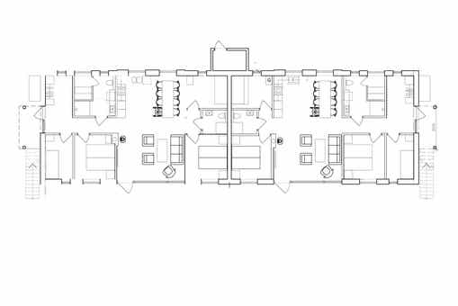 Ski-appartementen liggen in Hundfjället. Appartement op de begane grond, 8 bedden, 93 m², woonkamer met gecombineerde keuken, 4 slaapkamers, 2 douches, 2 toiletten, sauna.