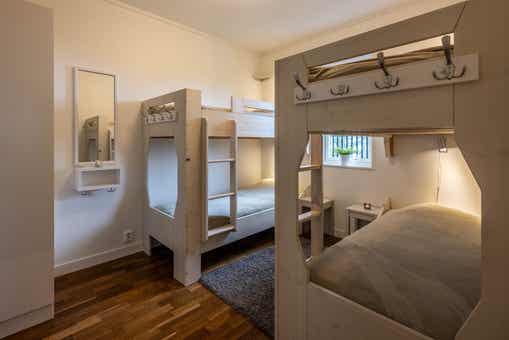 Slaapkamers:Slaapkamer-1 = 1 tweepersoonsbed 180 cm breed. Slaapkamer-2 = 2 stapelbedden 80 cm breed. Slaapkamer-3 = 2 stapelbedden 80 cm breed.