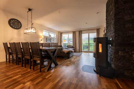 TV, open haard (hout is niet inbegrepen), wasmachine, droogkast, balkon (geen sneeuwruimen), buitenmeubilair, berging voor ski’s, 1 parkeerplaats.