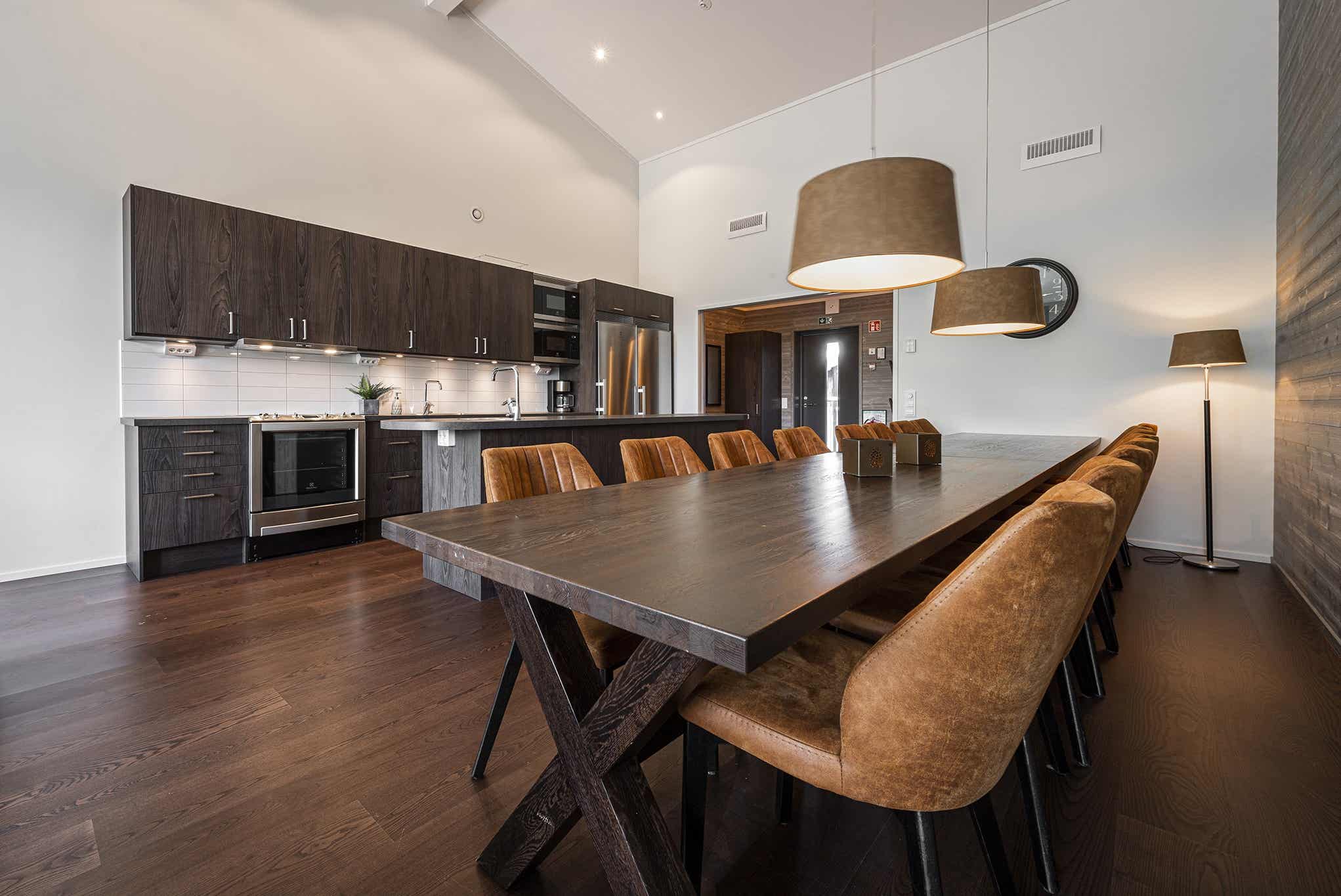 De keuken is voorzien van elektrische kookplaat met oven, koelkast, vriezer, 2 vaatwassers, 2 magnetrons.