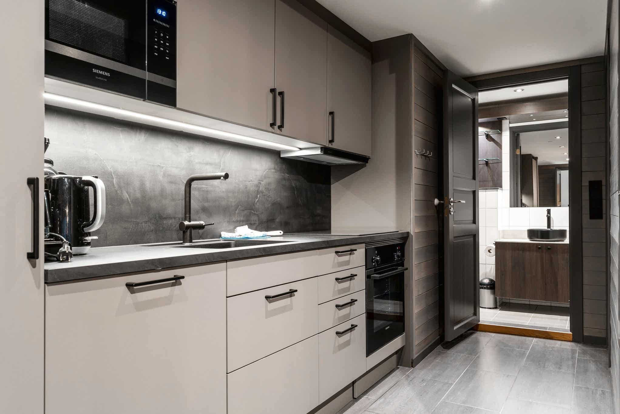Appartement op verdieping 3, Lodge Alpin, 8 bedden, 67 m², woonkamer met gecombineerde keuken, 3 slaapkamers, 2 douches, 2 toiletten, 1 sauna.