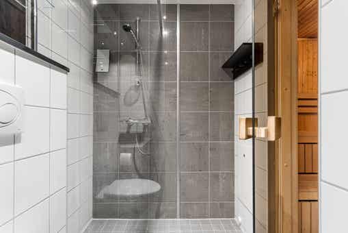 Badkamers:Badkamer 1: sauna, douche, toilet. Badkamer 2: douche, toilet.