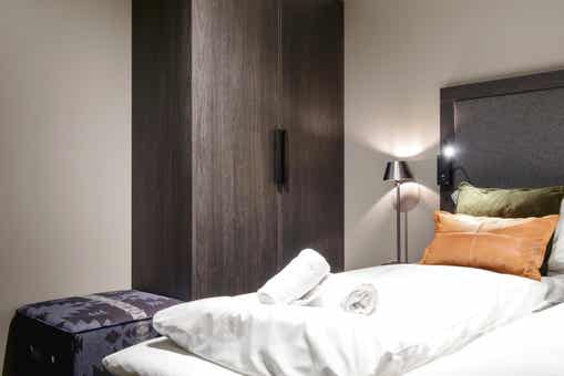 Appartement op verdieping 3, Lodge Suites, 6 bedden, 70 m², woonkamer met gecombineerde keuken, 2 slaapkamers, 1 douche, 1 toilet.