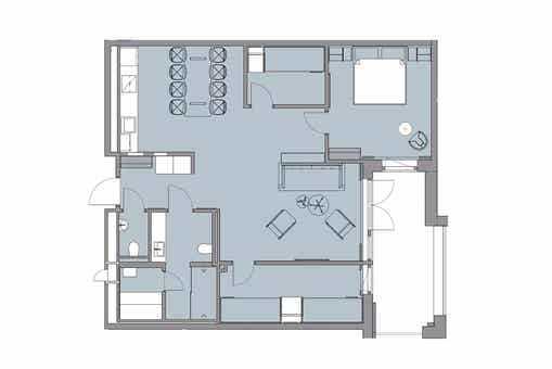 Appartement op verdieping 6, 8 bedden, 87 m², 3 slaapkamers, 1 douche, 2 WC, sauna.