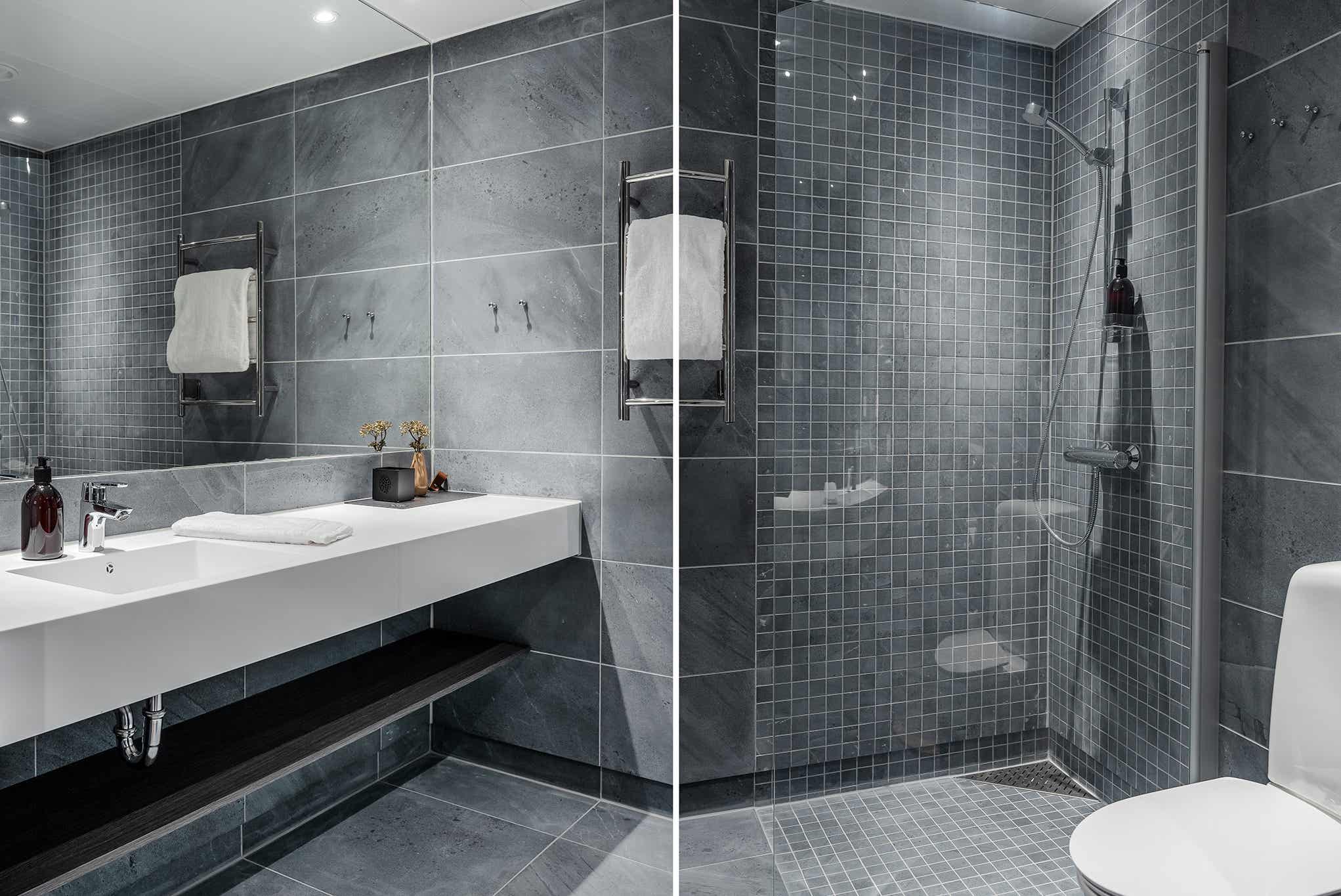 Badkamers:Badkamer 1: met douche/WC.