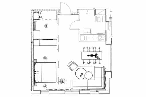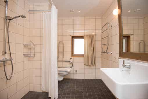 Appartement op verdieping 1, 4 bedden, 45 m², woonkamer met gecombineerde keuken, 2 slaapkamers, 1 douche, 1 toilet, toegang tot een gedeelde sauna, het appartement is ontworpen of aangepast voor gehandicapten.