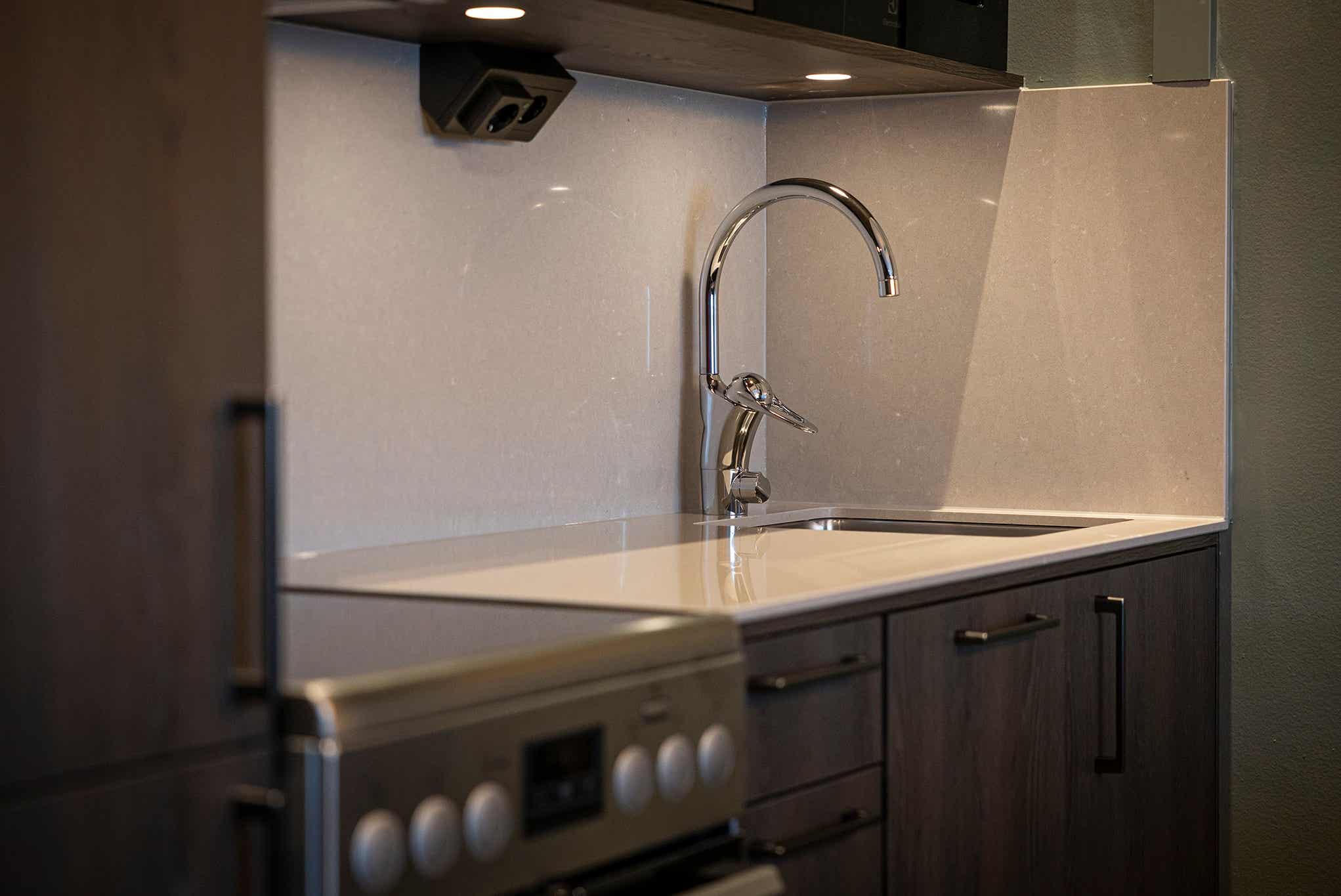 De keuken is voorzien van elektrische kookplaat met oven, koelkast met vriesvak, vaatwasser, magnetron.