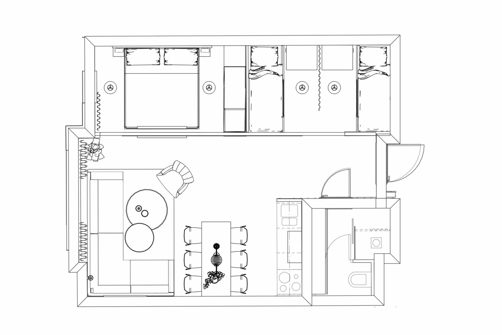 Appartement op verdieping 3, 6 bedden, 45 m², woonkamer met gecombineerde keuken, 2 slaapkamers, 1 douche, 1 toilet, toegang tot een gedeelde sauna.