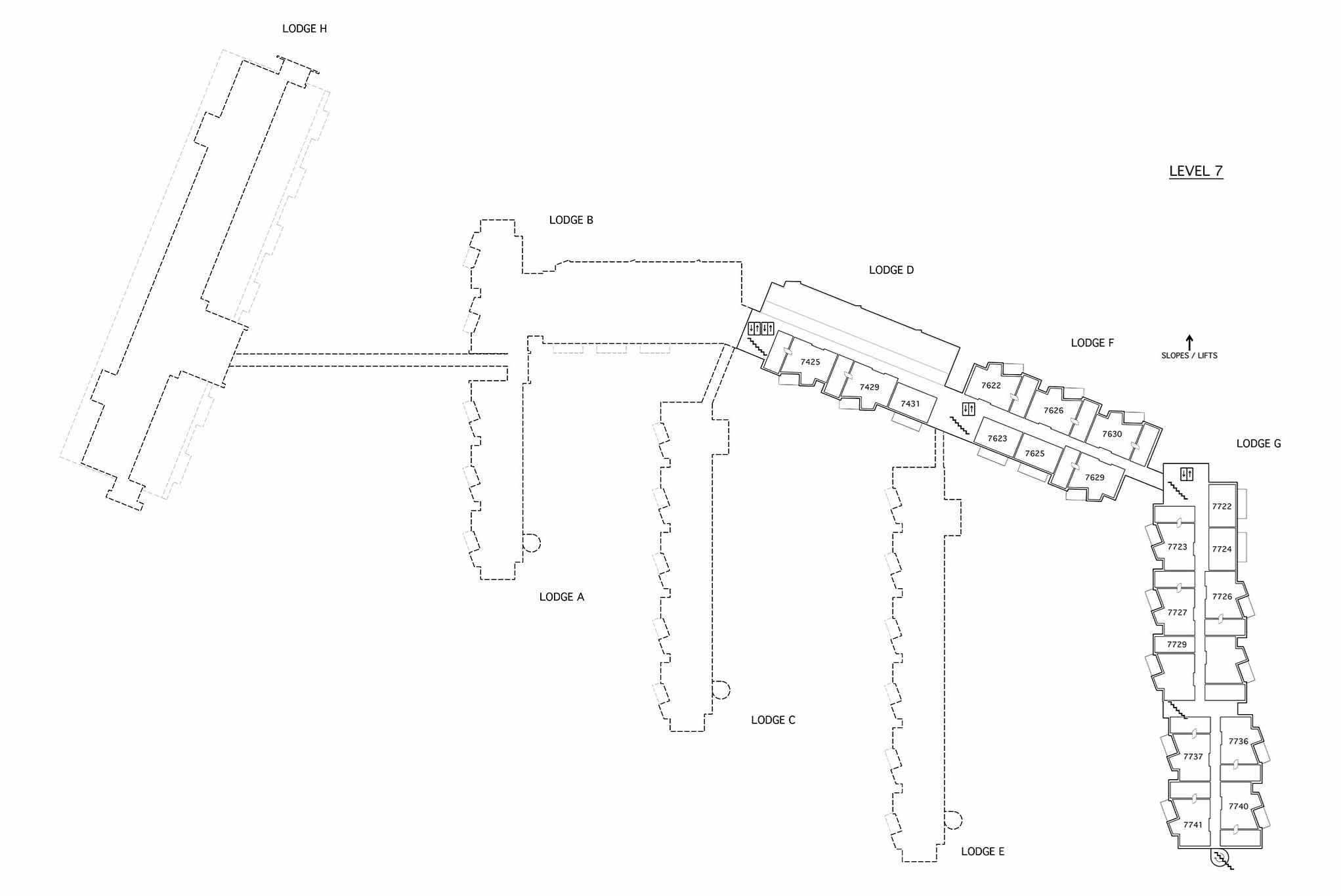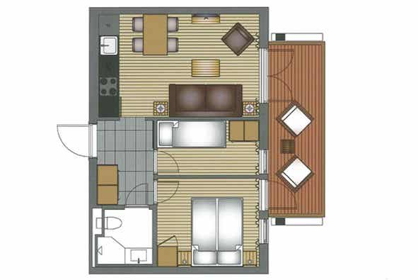Appartement op zevende verdieping, Lodge G, 4 bedden, 35 m², 2 slaapkamers, 1 douche, 1 toilet.