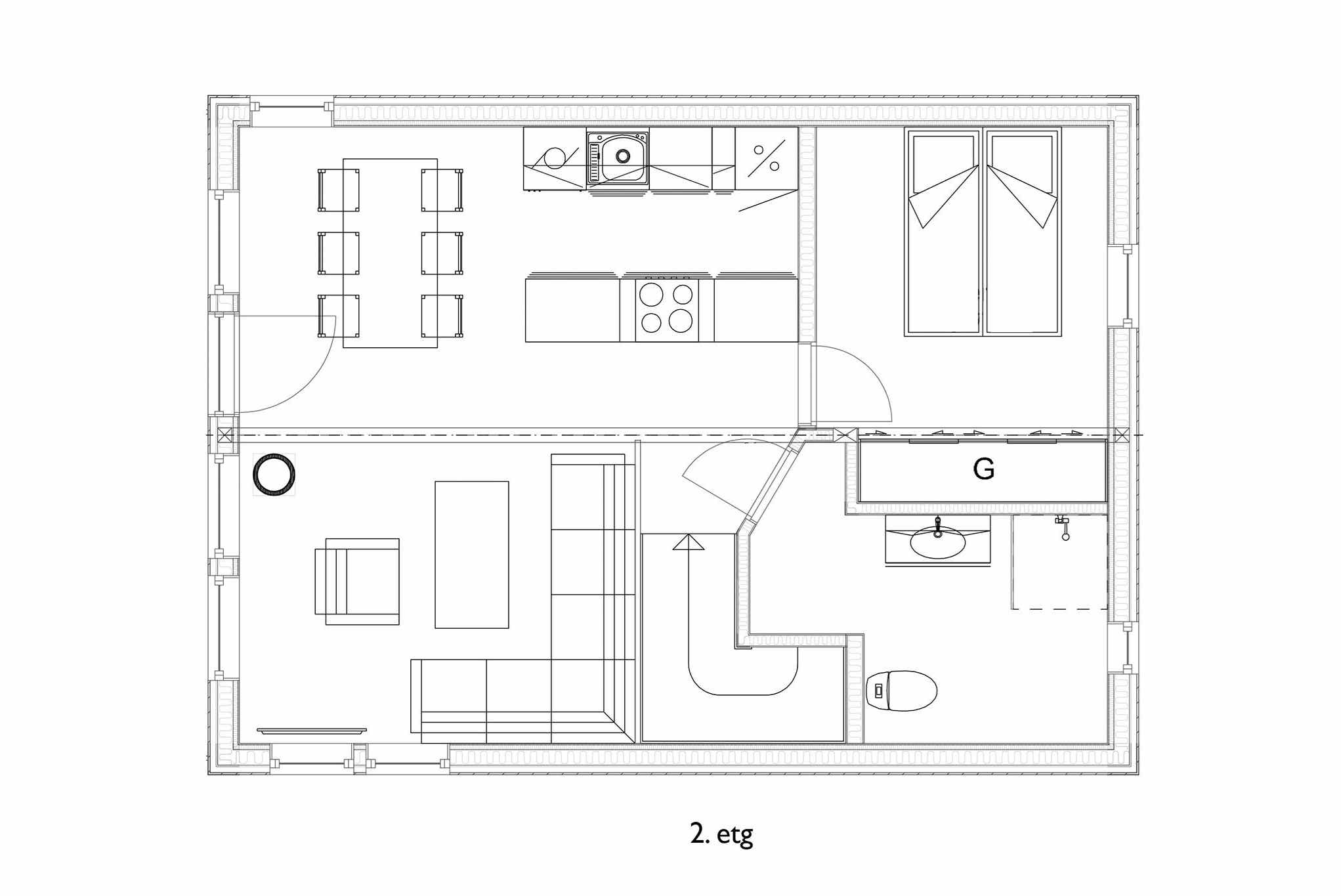 Vrijstaand huisje op twee verdiepingen, 8 bedden, 109 m², woonkamer met gecombineerde keuken, 4 slaapkamers, 2 douches, 2 toiletten.