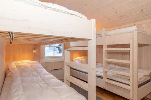 Slaapkamers:Slaapkamer 1= 1 tweepersoonsbed 150 cm breed. Slaapkamer 2= 1 stapelbed met 150 cm breed onderbed en 90 cm breed bovenbed. Slaapkamer 3= 2 stapelbedden 75 cm breed.