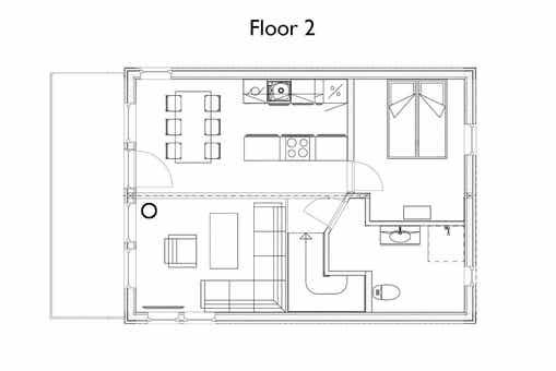 Vrijstaand huisje op twee verdiepingen, 8 bedden, 99 m², woonkamer met gecombineerde keuken, 4 slaapkamers, 2 douches, 2 toiletten.