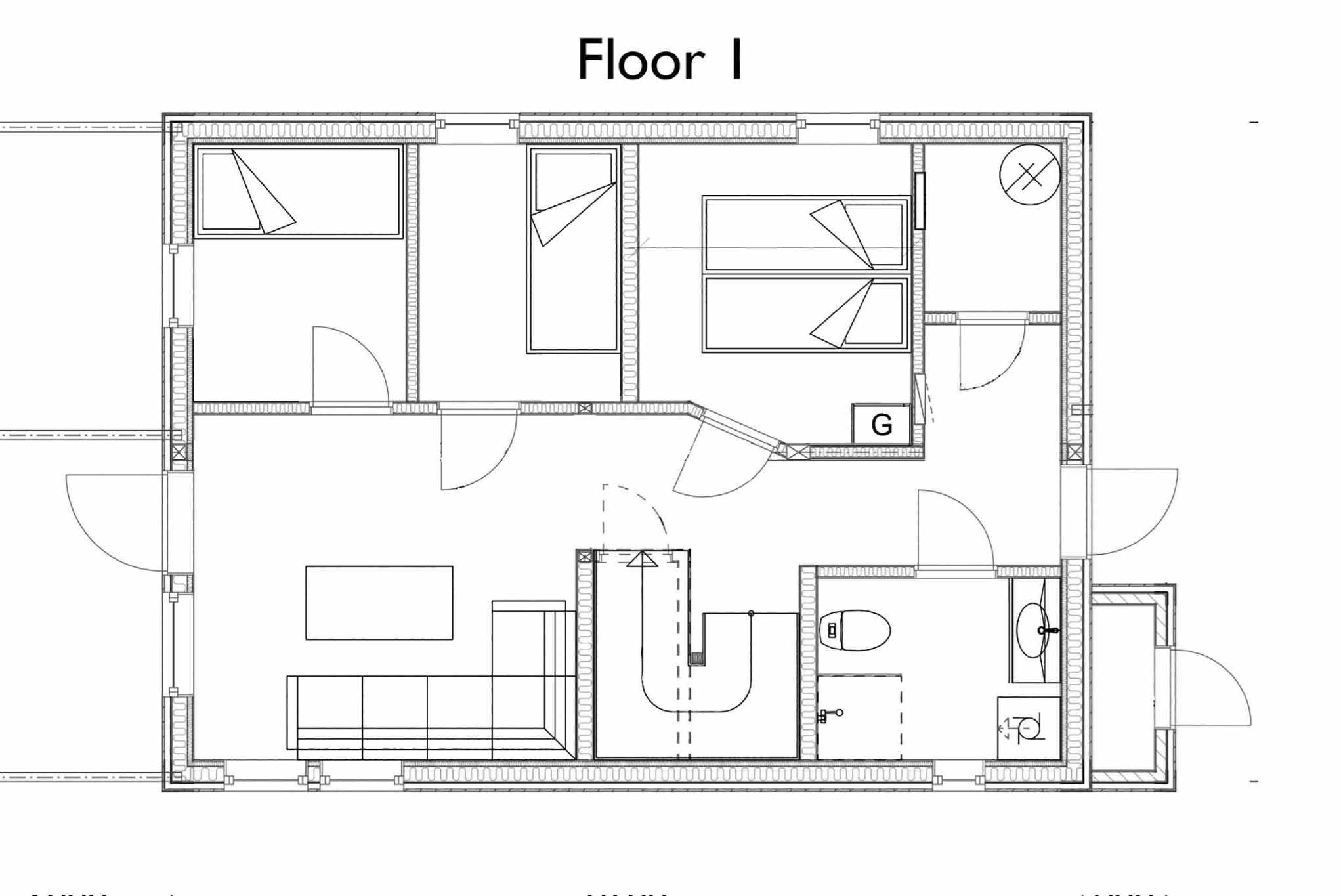 Slaapkamers:Slaapkamer 1= 1 tweepersoonsbed 150 cm breed. Slaapkamer 2= 1 tweepersoonsbed 180 cm breed. Slaapkamer 3= 1 stapelbed met 90 cm breed onderbed en 75 cm breed bovenbed. Slaapkamer 4= 1 stapelbed met 90 cm breed onderbed en 75 cm breed bovenbed.