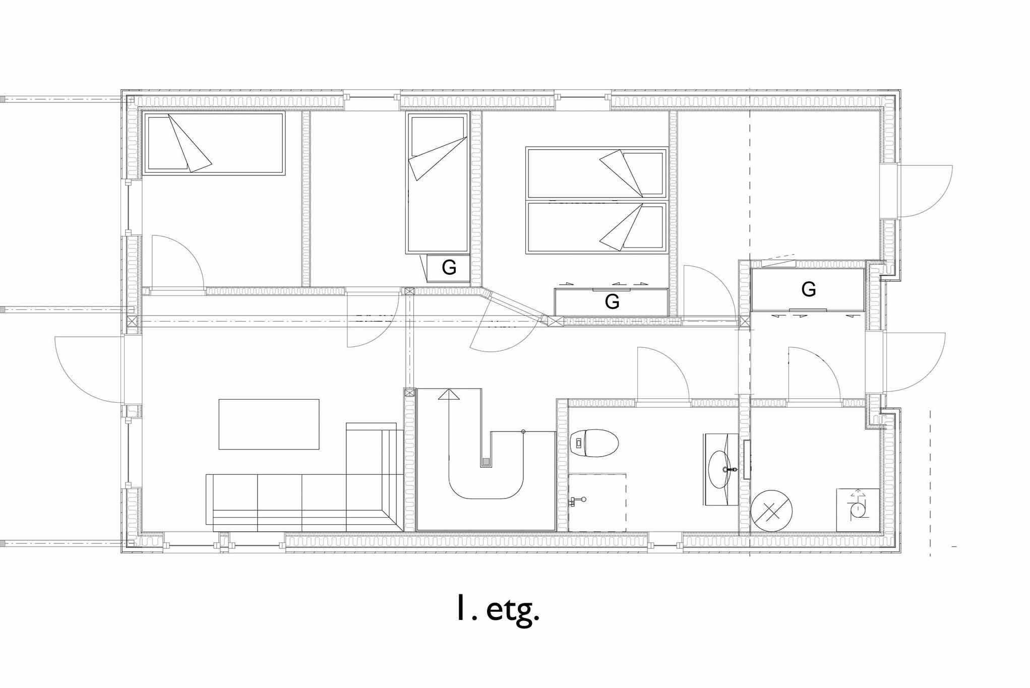 Slaapkamers:Slaapkamer 1= 1 tweepersoonsbed 150 cm breed. Slaapkamer 2= 1 tweepersoonsbed 180 cm breed. Slaapkamer 3= 1 stapelbed met 90 cm breed onderbed en 75 cm breed bovenbed. Slaapkamer 4= 1 stapelbed met 90 cm breed onderbed en 75 cm breed bovenbed.