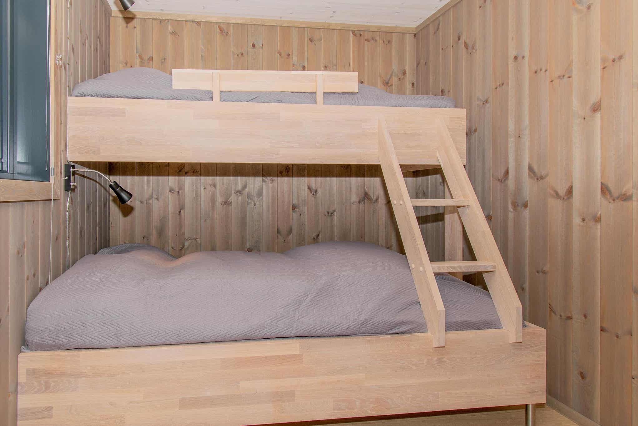 Slaapkamers:Slaapkamer 1= 1 tweepersoonsbed 160 cm breed. Slaapkamer 2= 1 tweepersoonsbed 180 cm breed. Slaapkamer 3= 1 stapelbed met 120 cm breed onderbed en 75 cm breed bovenbed. Slaapkamer 4= 1 stapelbed met 120 cm breed onderbed en 75 cm breed bovenbed.