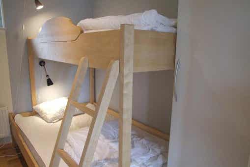Slaapkamers:Slaapkamer 1 = 1 tweepersoonsbed. Slaapkamer 2 = 1 stapelbed met 120 cm breed onderbed.