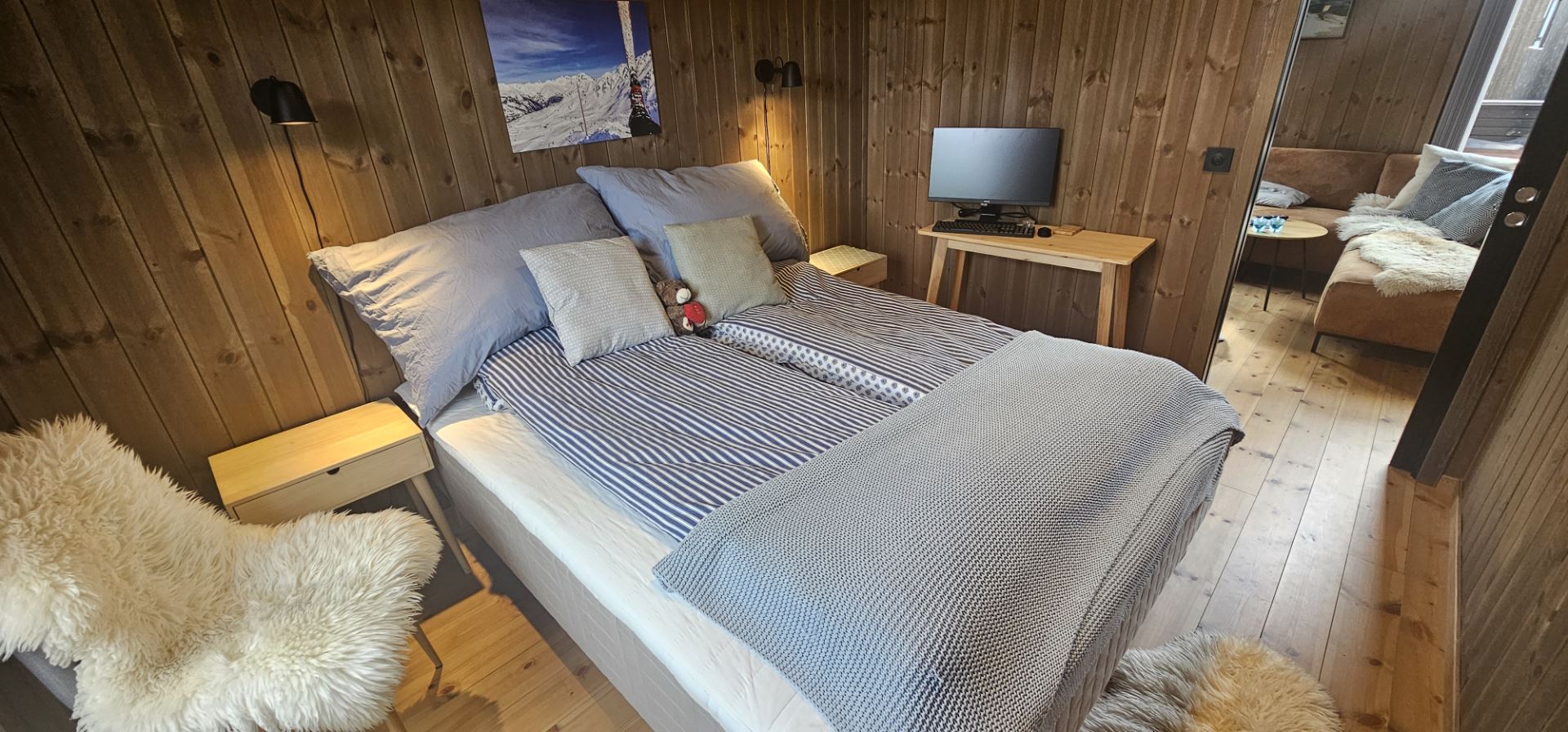 Cabine met 3 slaapkamers, 8 bedden, 1 badkamer. Korte afstand tot de skipiste.