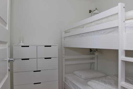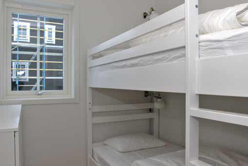 Slaapkamers:Slaapkamer 1 = 1 tweepersoonsbed 160 cm breed. Slaapkamer 2 = 1 tweepersoonsbed 160 cm breed. Slaapkamer 3 = 1 stapelbed met 90 cm breed onderbed en bovenbed. Slaapkamer 4 = 1 stapelbed met 90 cm breed onderbed en bovenbed.