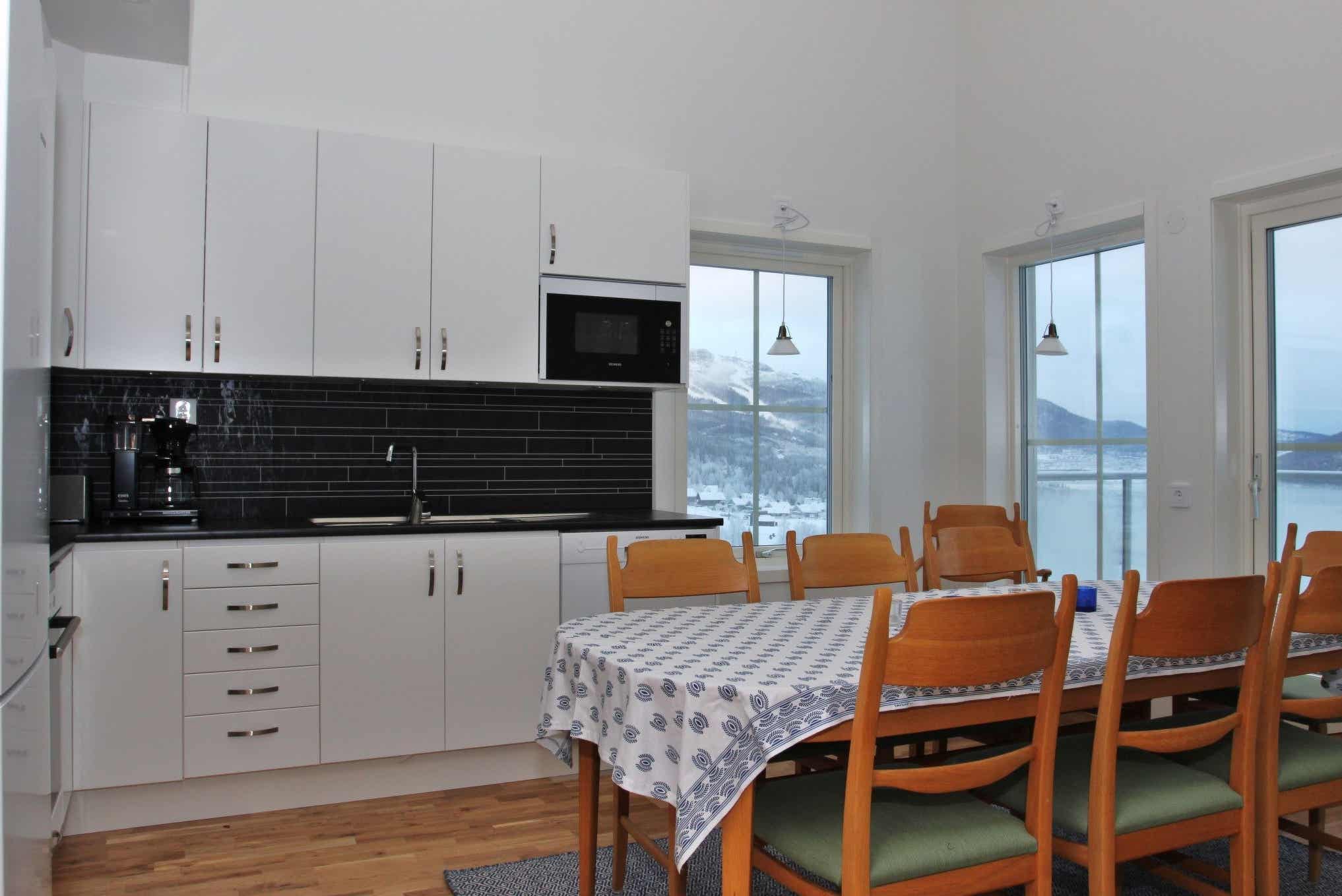 TV, wasmachine, houtkachel (hout is niet inbegrepen), droogkast, balkon (niet geruimd), afsluitbare skiberging, 1 parkeerplaats met stroom voor motorvoorverwarmer.