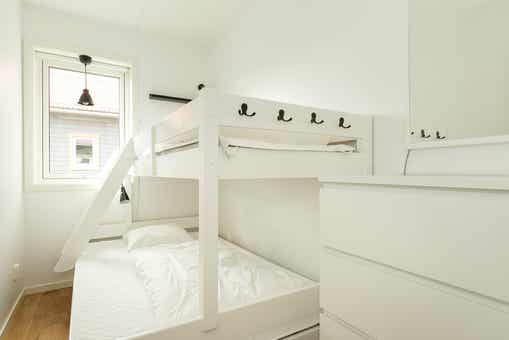 Slaapkamers:Slaapkamer 1 = 1 tweepersoonsbed. Slaapkamer 2 = 1 stapelbed met 120 cm breed onderbed. Slaapkamer 3 = 1 stapelbed met 120 cm breed onderbed.