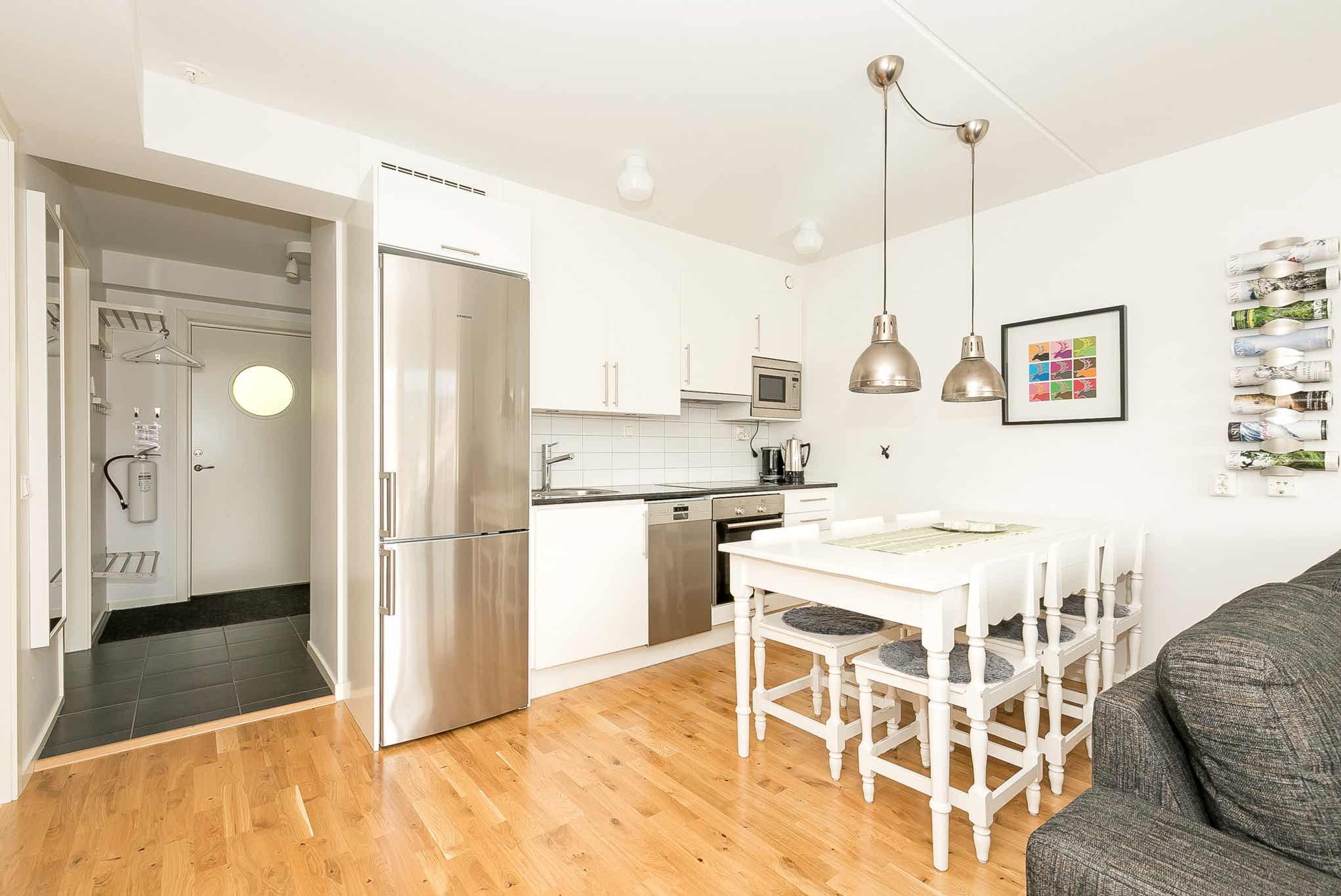 Keuken is voorzien van fornuis met oven, koelkast met vriesvak, vaatwasser, magnetron.