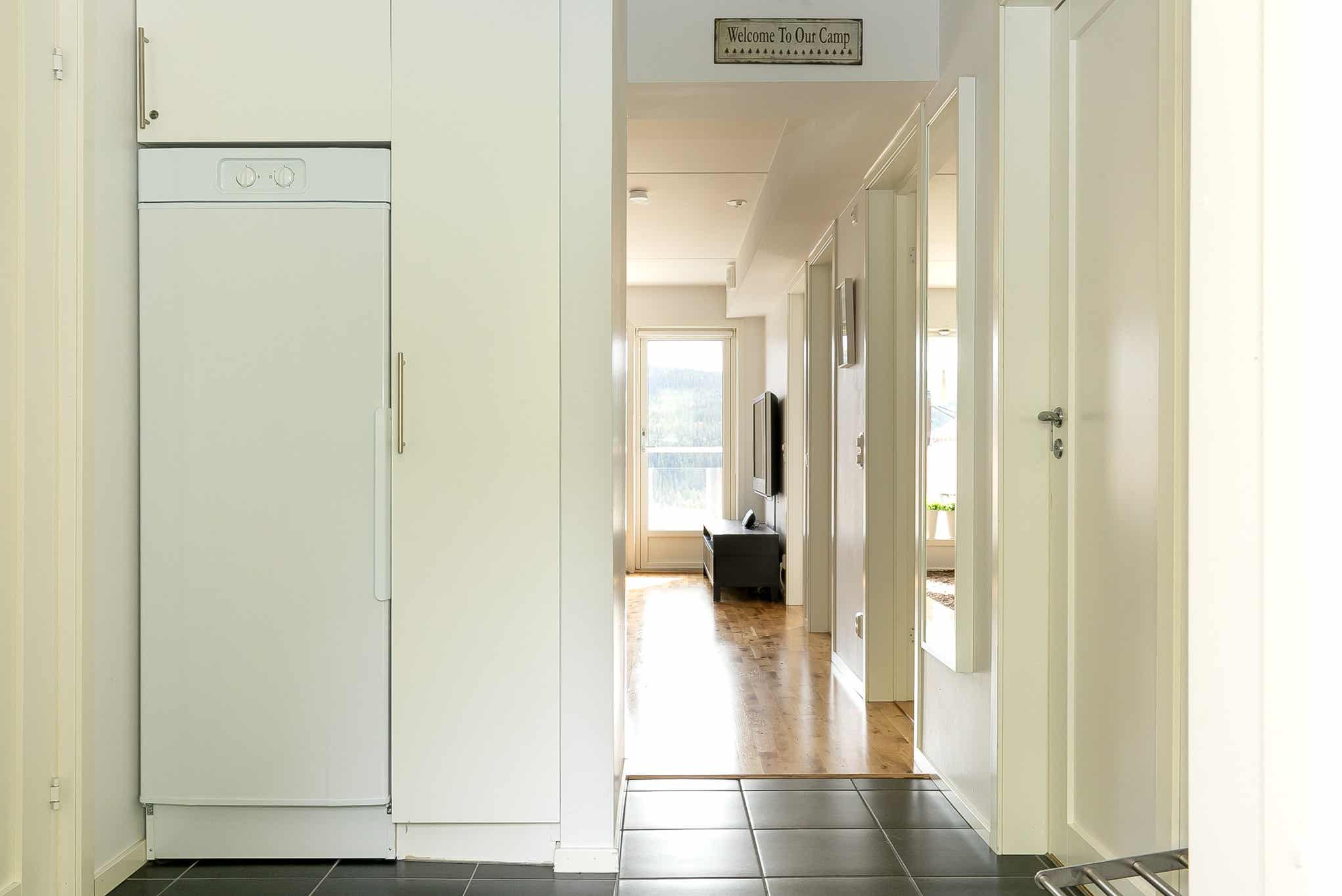 TV, wasmachine, houtkachel (hout is niet inbegrepen), droogkast, balkon (niet geruimd), afsluitbare skiberging, 1 parkeerplaats met stroom voor motorvoorverwarmer.