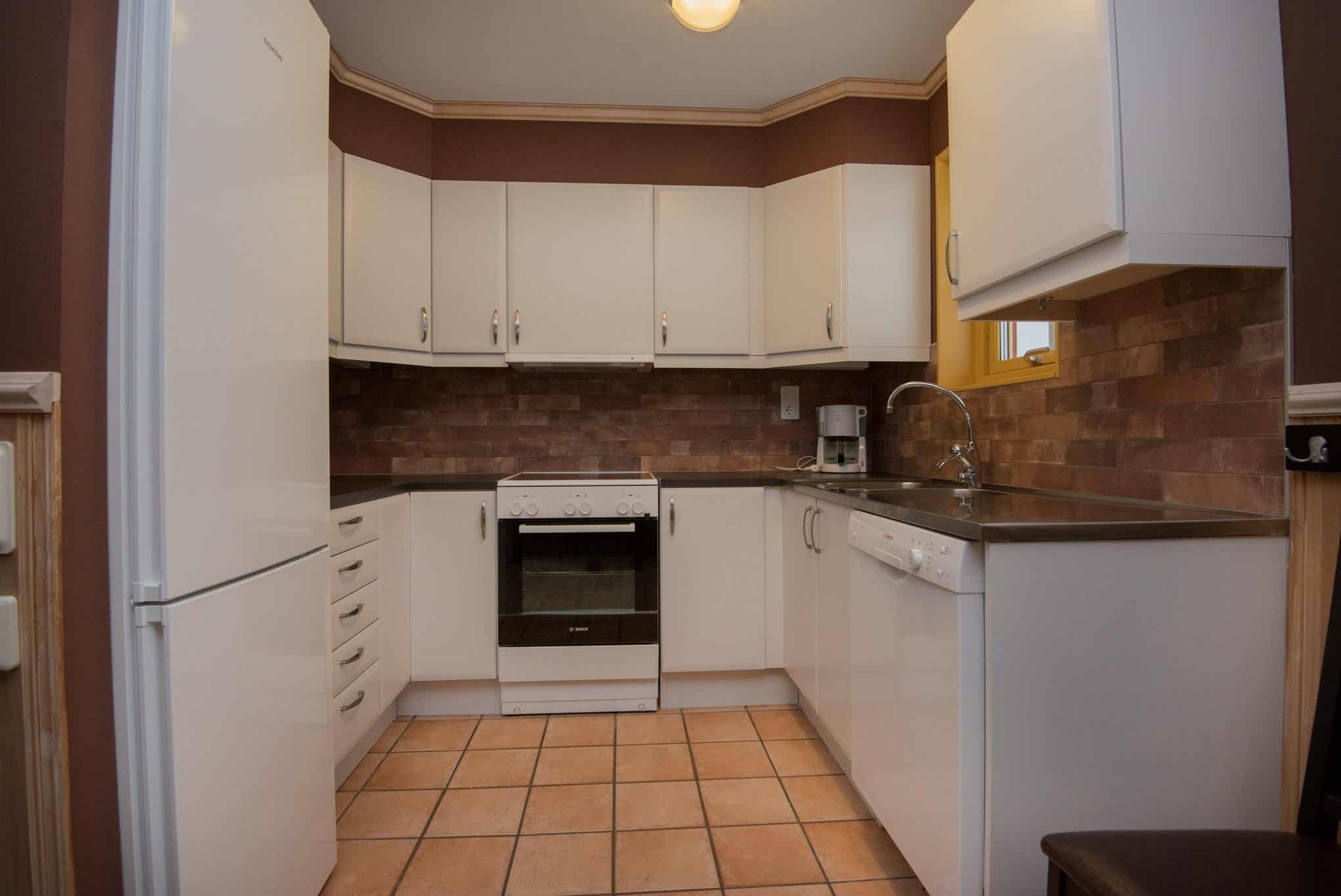 De keuken is voorzien van fornuis met oven, koelkast, vriezer, vaatwasser, magnetron.