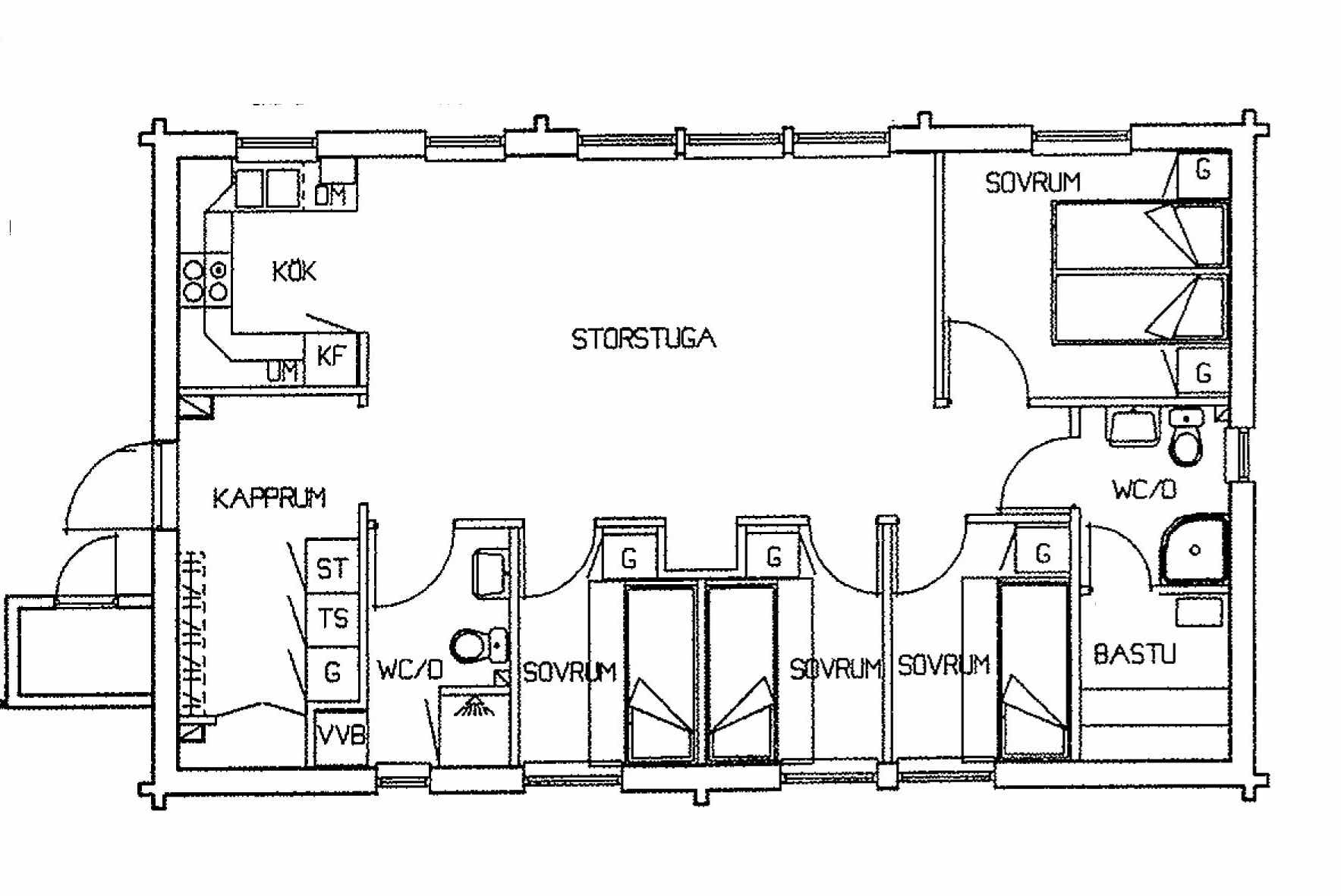 Slaapkamers:Slaapkamer-1 = 1 tweepersoonsbed. Slaapkamer-2 = 1 stapelbed met 120 cm breed onderbed. Slaapkamer-3 = 1 stapelbed met 120 cm breed onderbed. Slaapkamer-4 = 1 stapelbed met 120 cm breed onderbed.