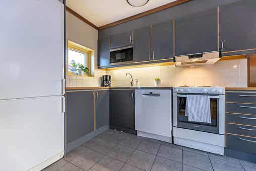 De keuken is voorzien van fornuis met oven, koelkast, vriezer, vaatwasser, magnetron.