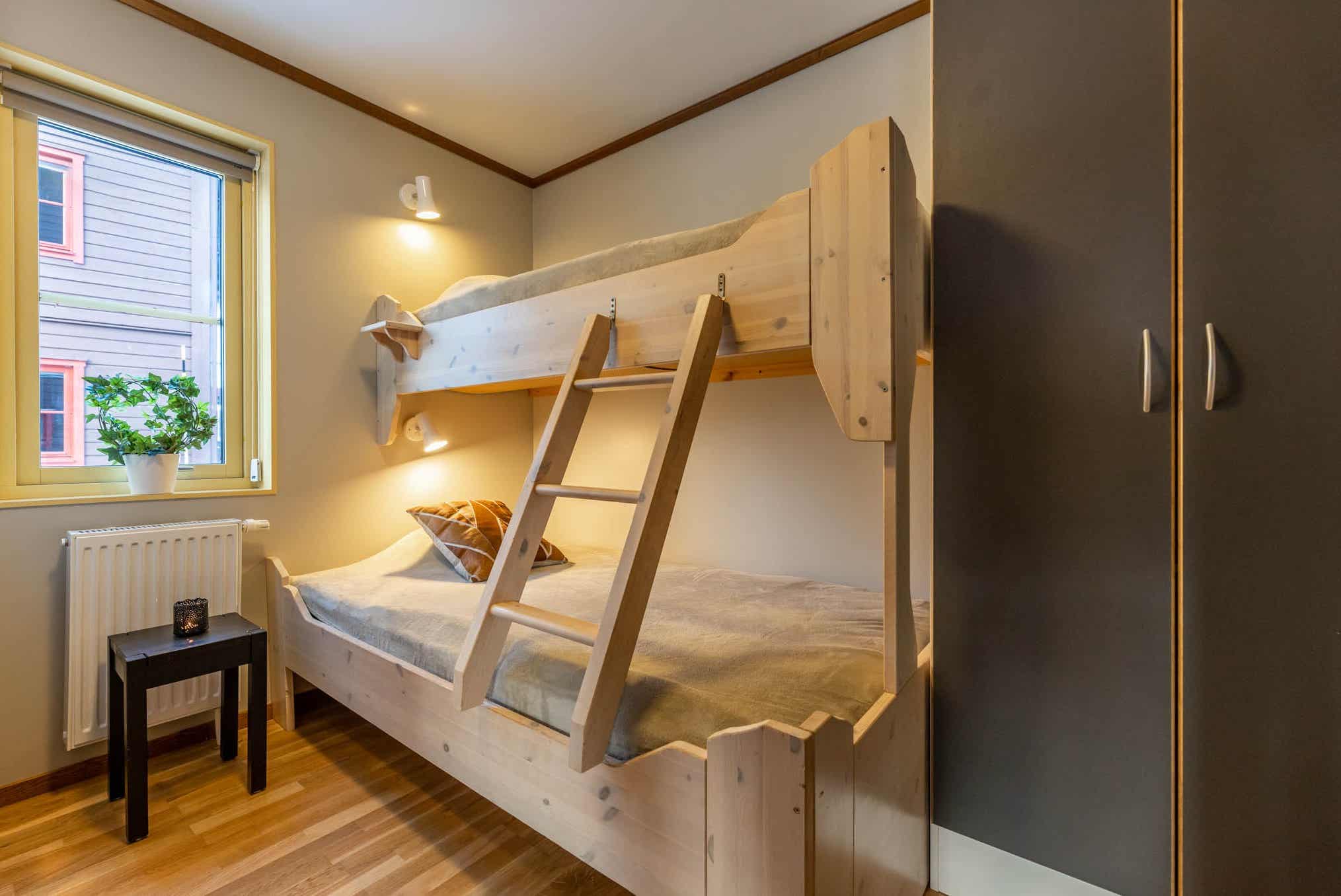 Slaapkamers:Slaapkamer-1 = 1 tweepersoonsbed. Slaapkamer-2 = 1 stapelbed met 120 cm breed onderbed. Slaapkamer-3 = 1 stapelbed met 120 cm breed onderbed. Slaapkamer-4 = 1 stapelbed met 120 cm breed onderbed.