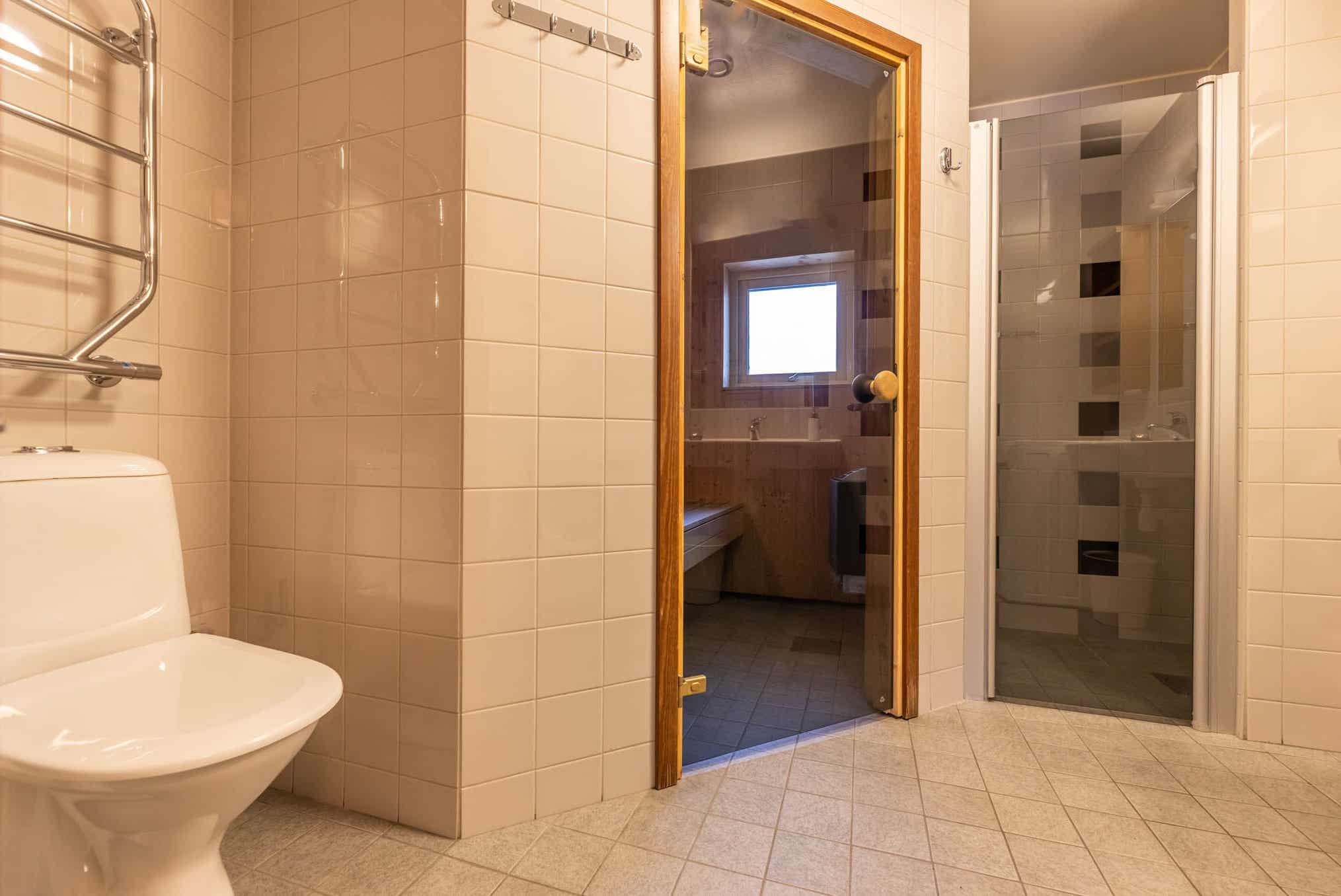 Badkamers:Badkamer 1: met douche/WC/sauna. Badkamer 2: met douche/WC.