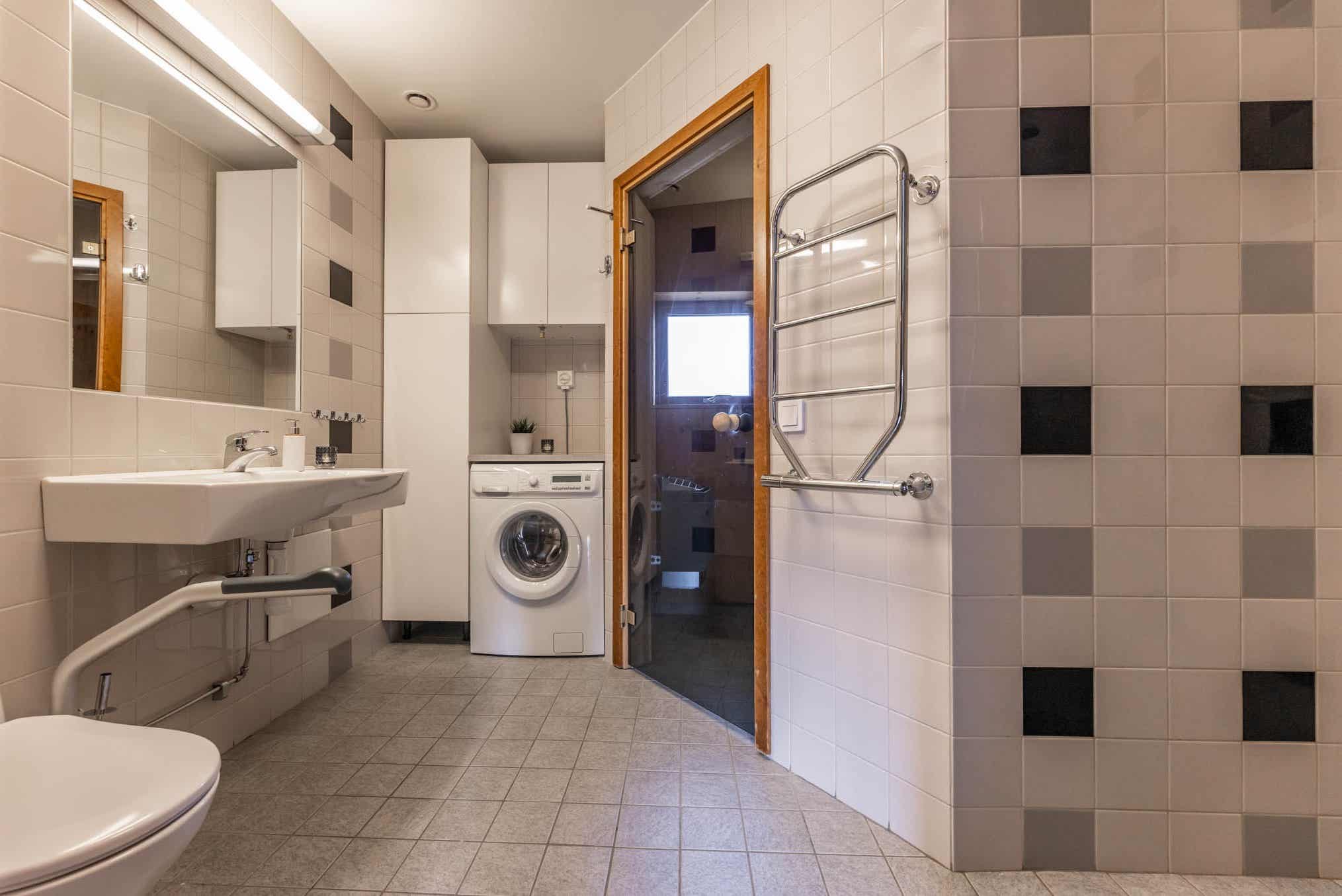 Badkamers:Badkamer 1: met douche/WC/sauna.