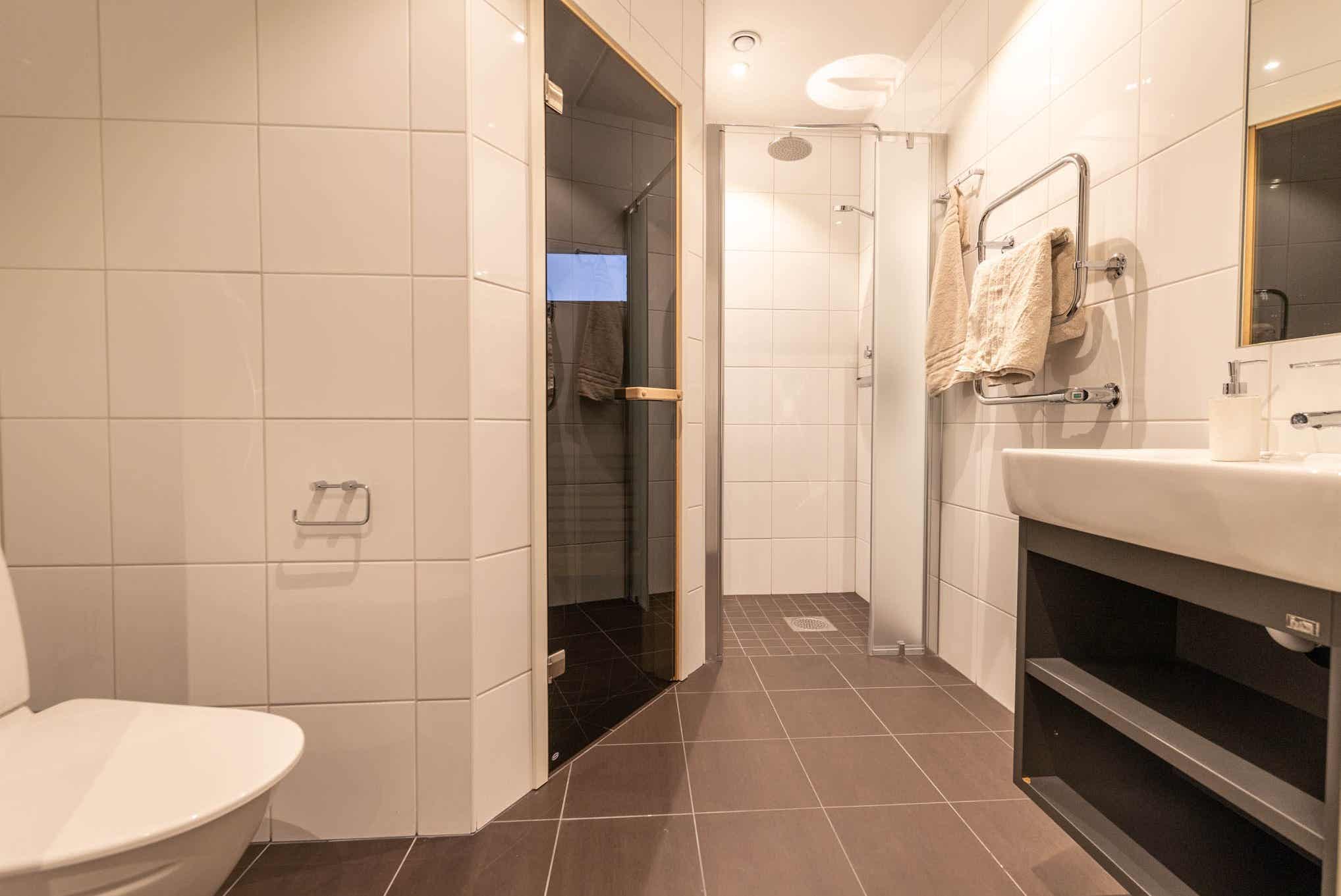 Badkamers:Badkamer 1: met douche/WC/sauna. Badkamer 2: met douche/WC/handdoekdroger.