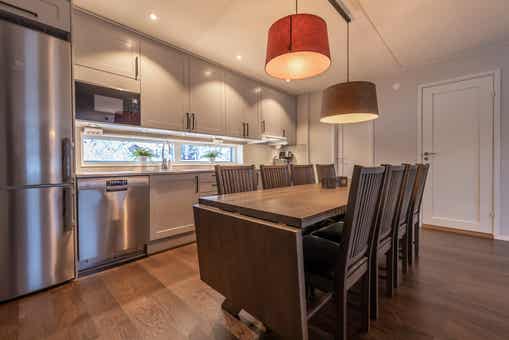 De keuken is voorzien van elektrische kookplaat, inbouwoven, koelkast, vriezer, vaatwasser, magnetron.